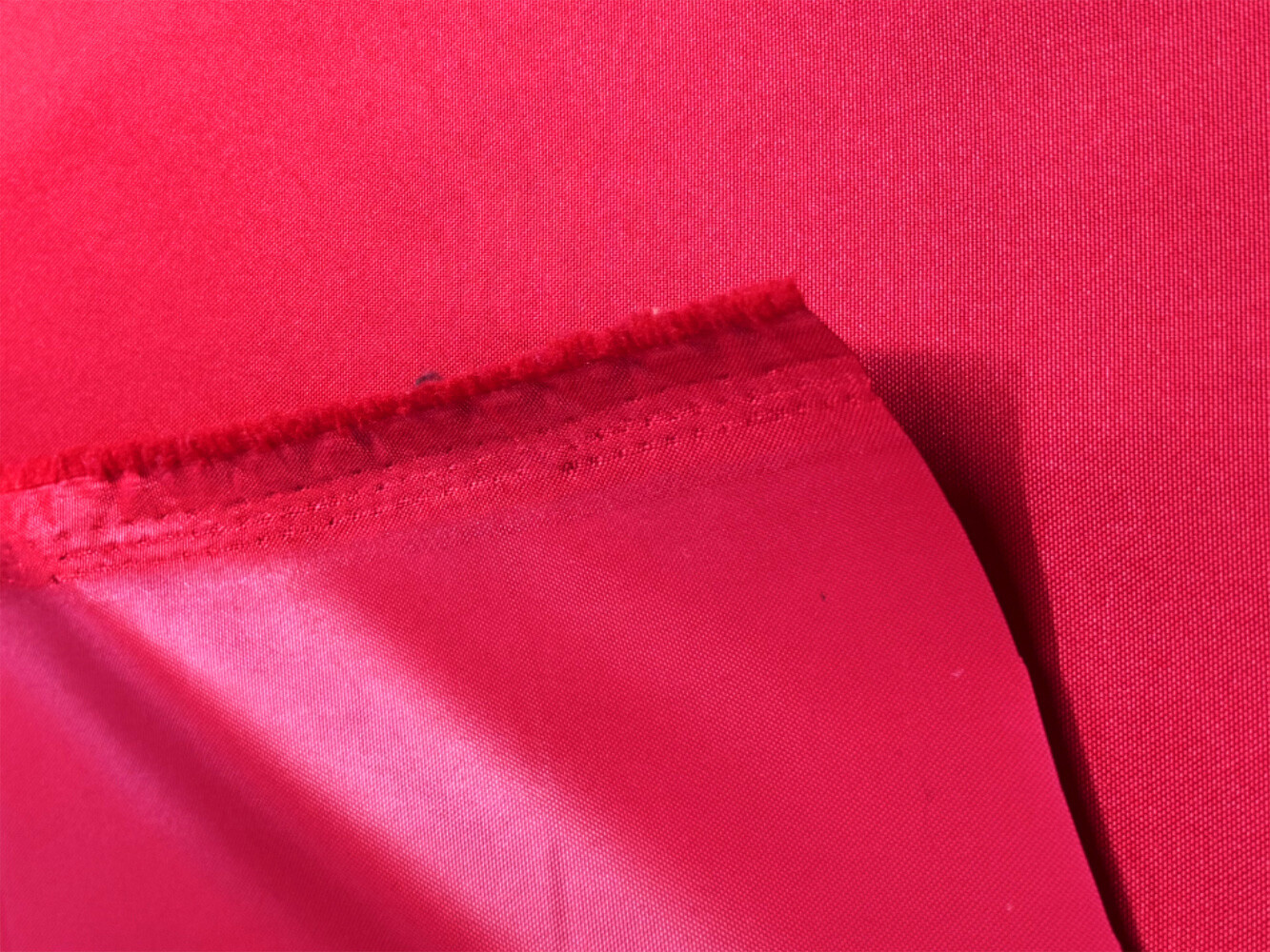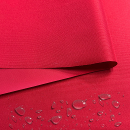 Tato látka je nejen esteticky přitažlivá díky své syté červené barvě, ale také praktická díky své vodu odpuzující úpravě. Je vyrobena z kvalitního polyesteru, který zajišťuje dlouhou životnost a odolnost vůči povětrnostním vlivům.