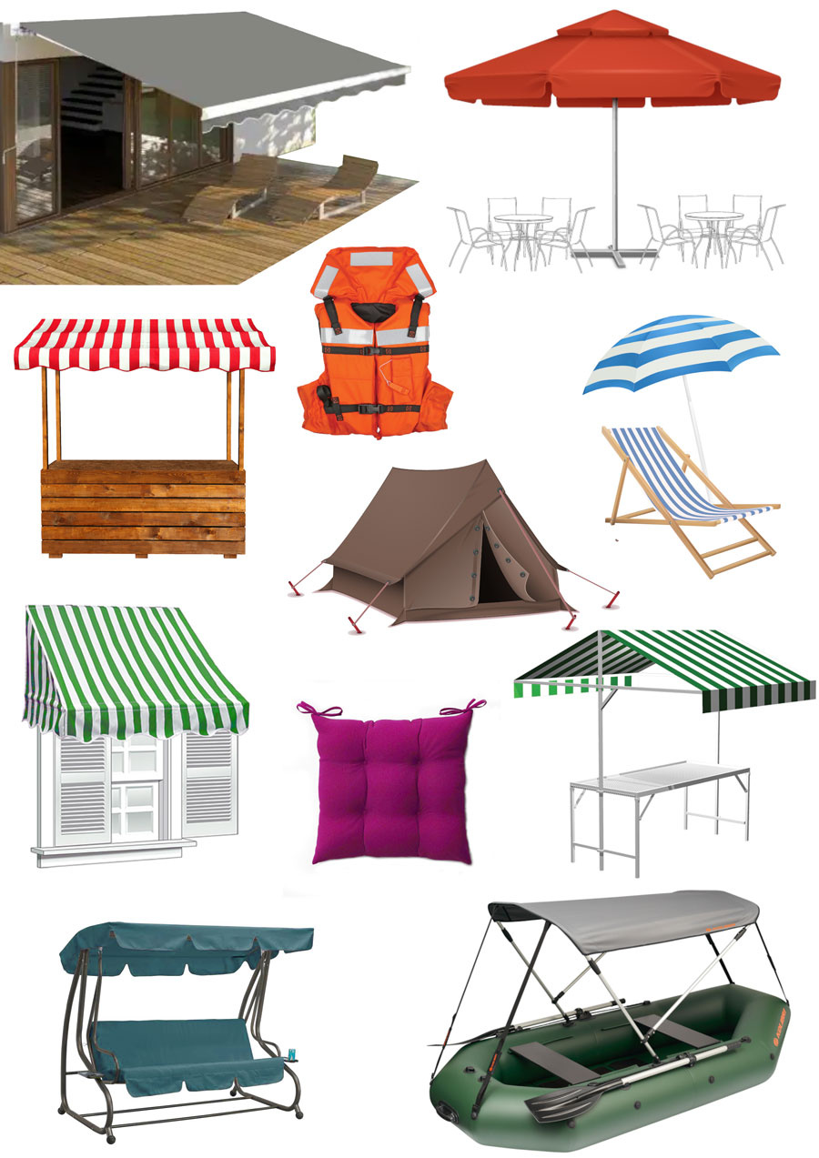 pro výrobu batohů, reklamních tašek a chráničů, outdoorových a profesních oděvů, slunečníků, markýz, potahů na kočárky, cestovních tašek a kufrů