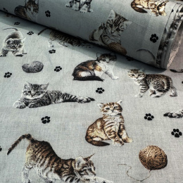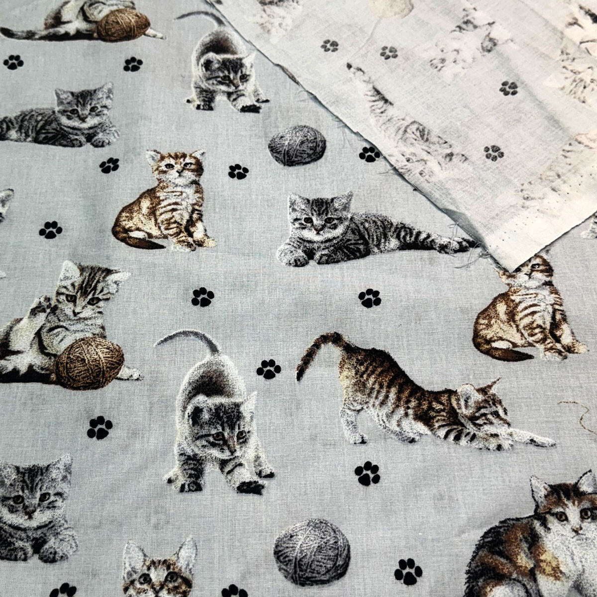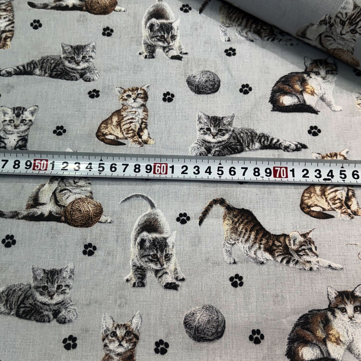 Bavlněná látka, metráž. Kočky a klubko na Sv.Šedém
