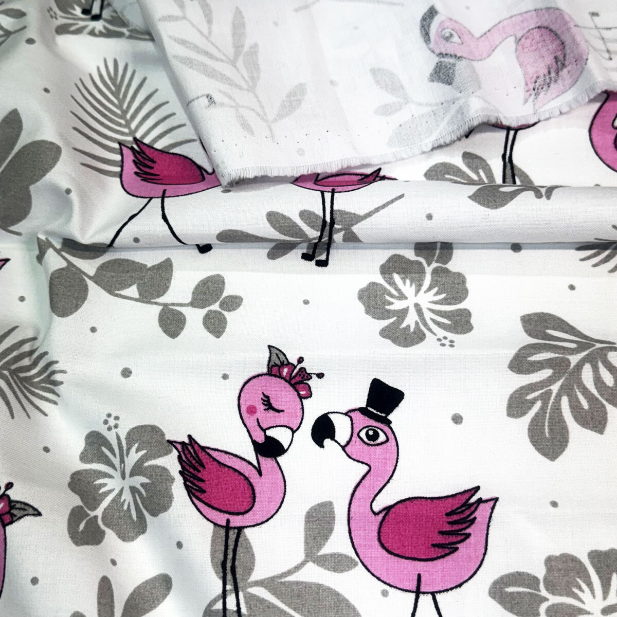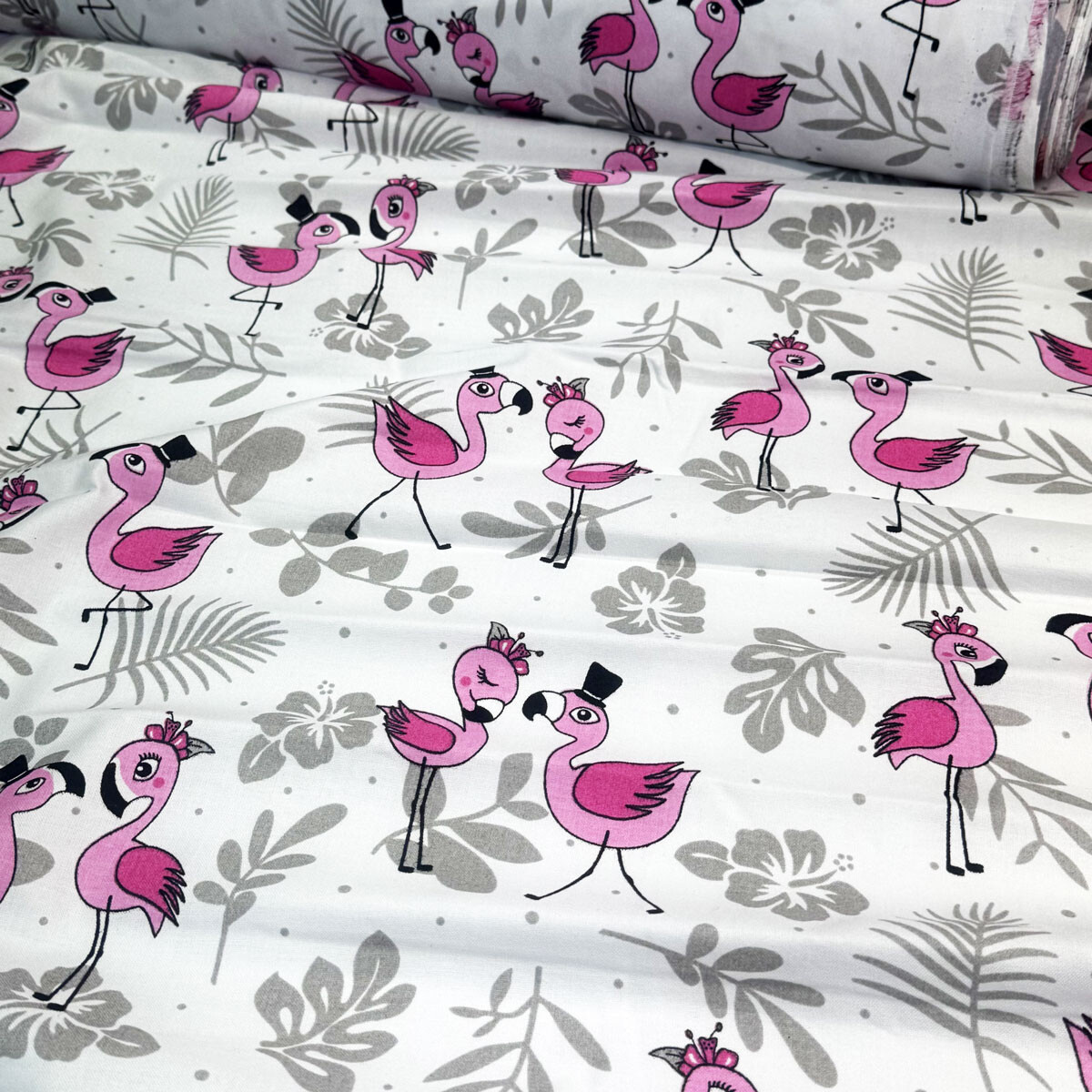 Bavlněná látka, metráž. Plameňáci na Bílém