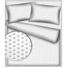 Dětská bavlněná látka Koruny Šedé na Bílém