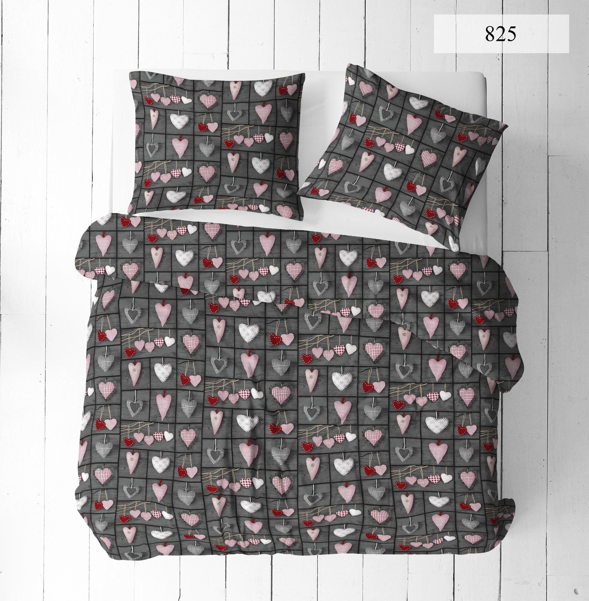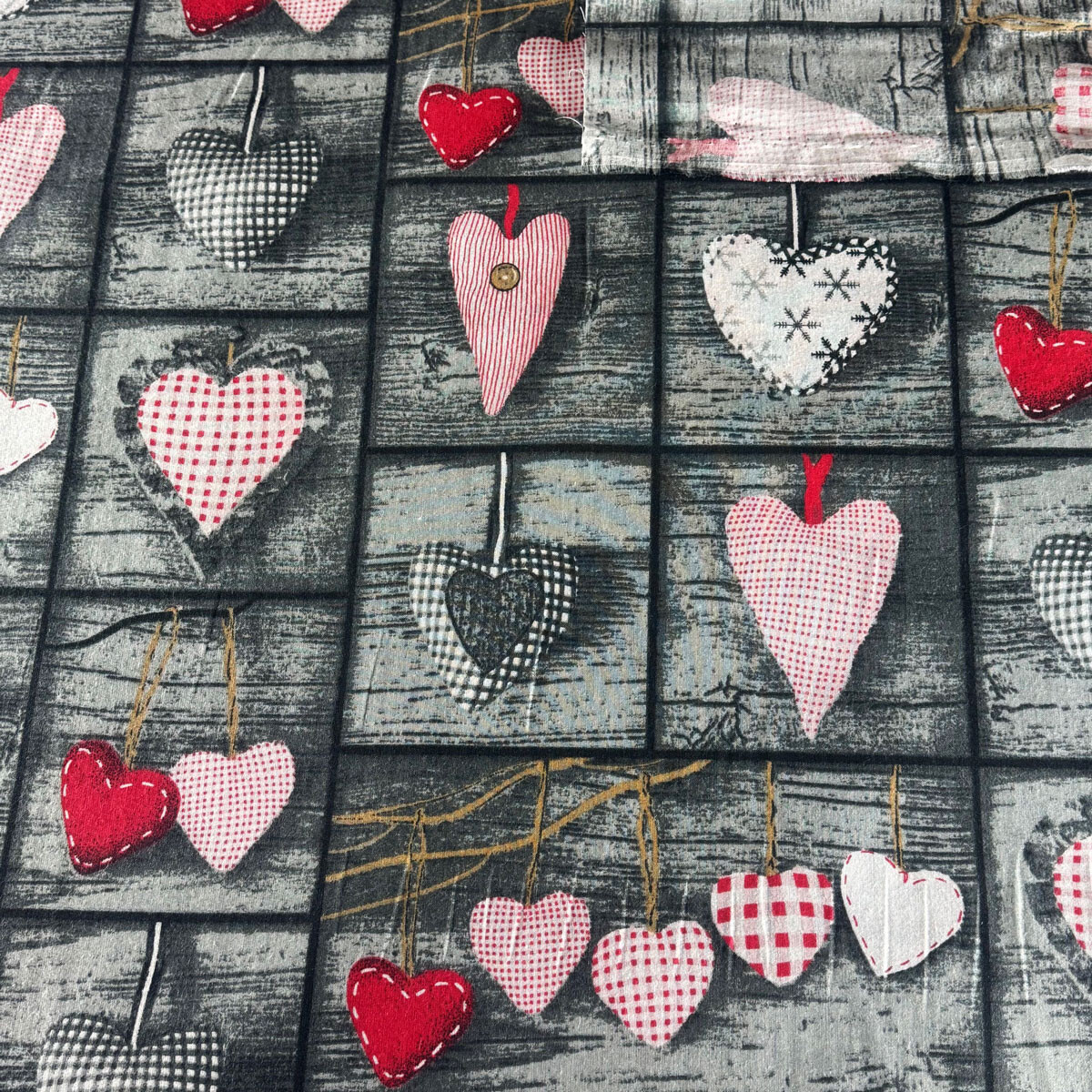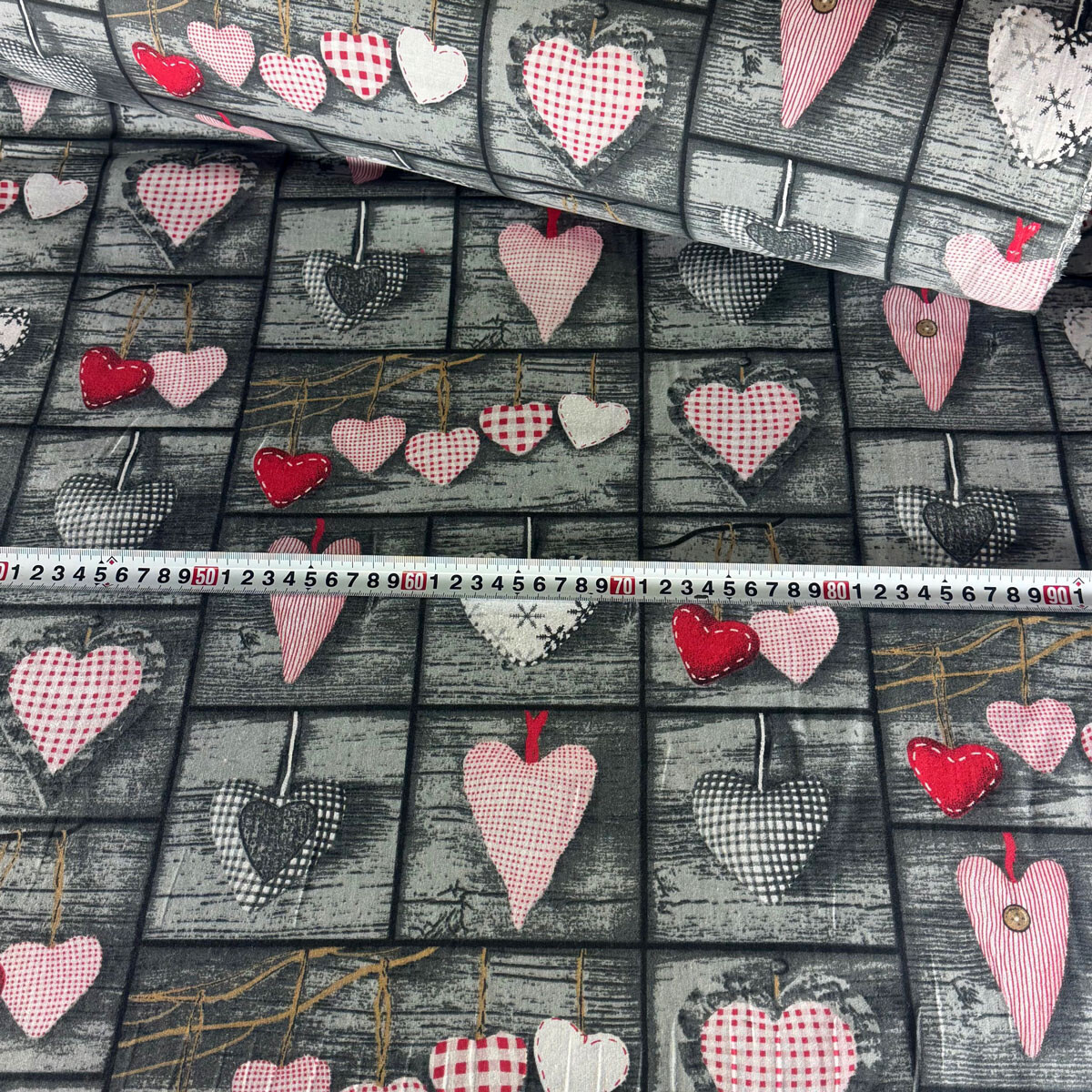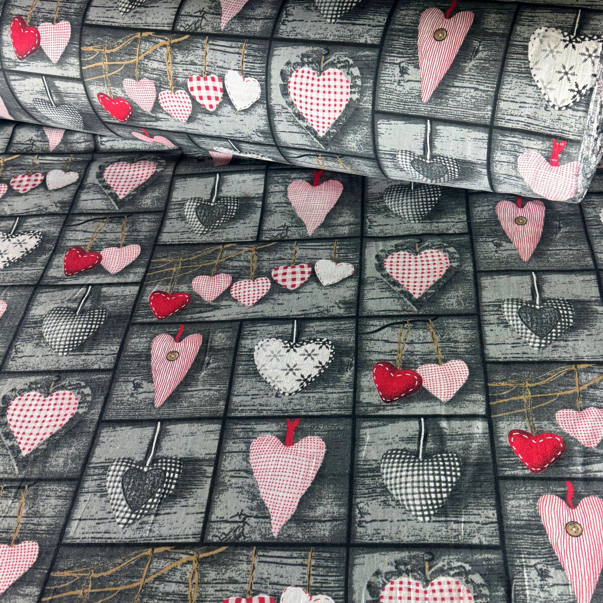 Popis Dekorační bavlněná látka, metráž, Srdíčka na Šedém