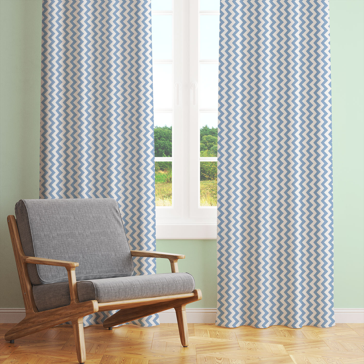 Dekorační dětské bavlněné látky, metráž. Cikcak Modrý