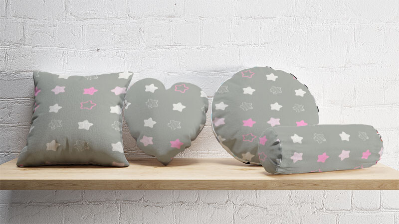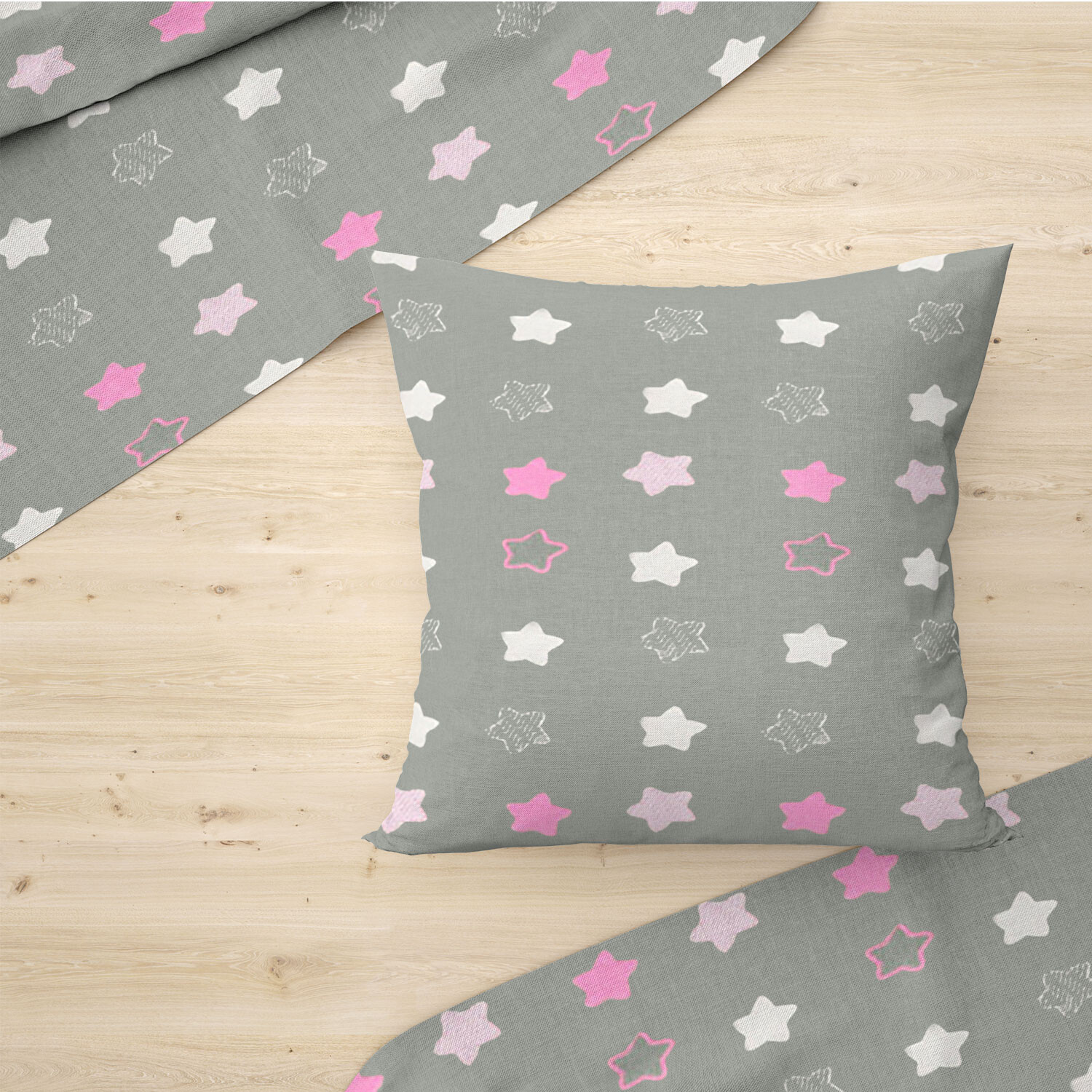 Dětská bavlněná látka Hvězdy Bílé a Růžové na Šedém
