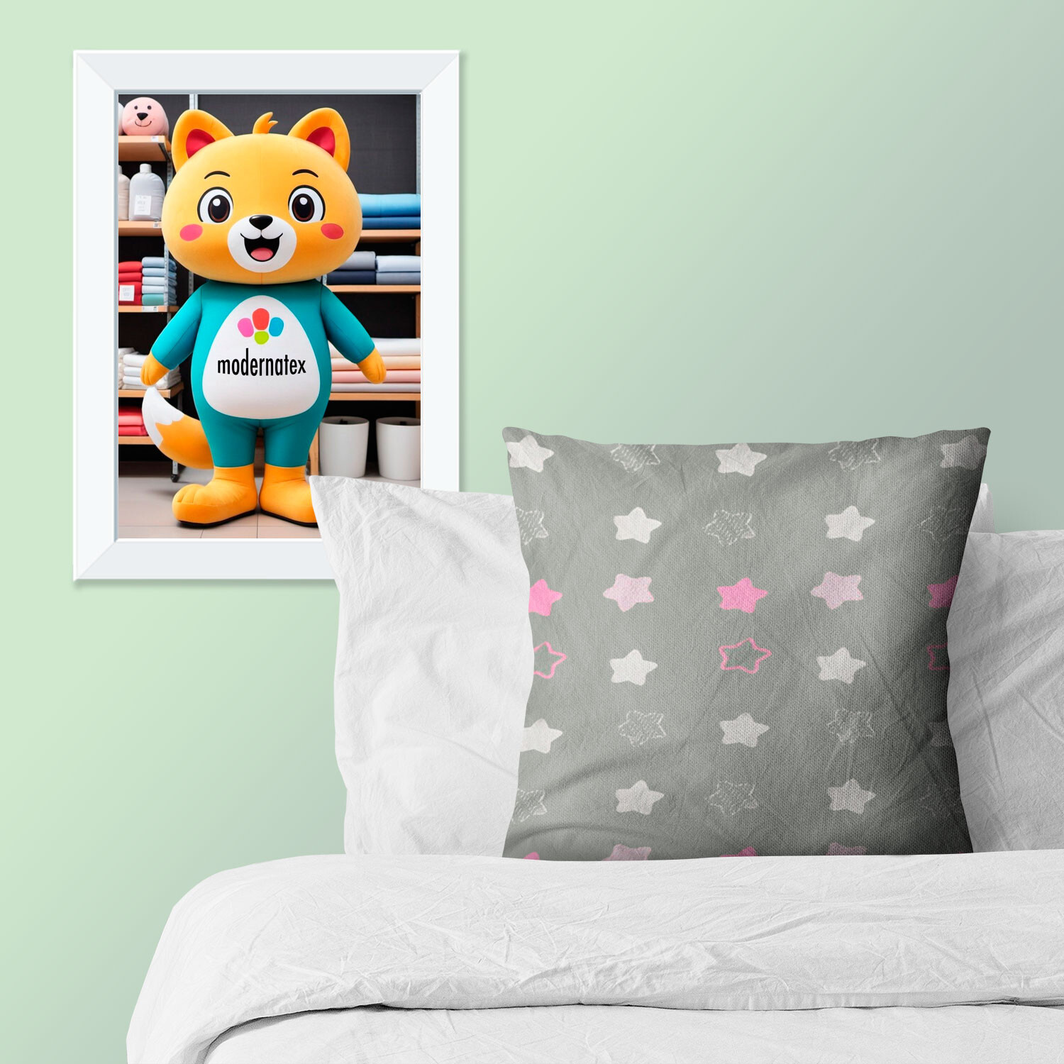 Popis Dětská bavlněná látka Hvězdy Bílé a Růžové na Šedém