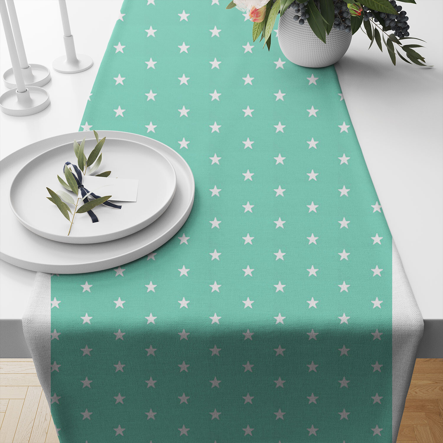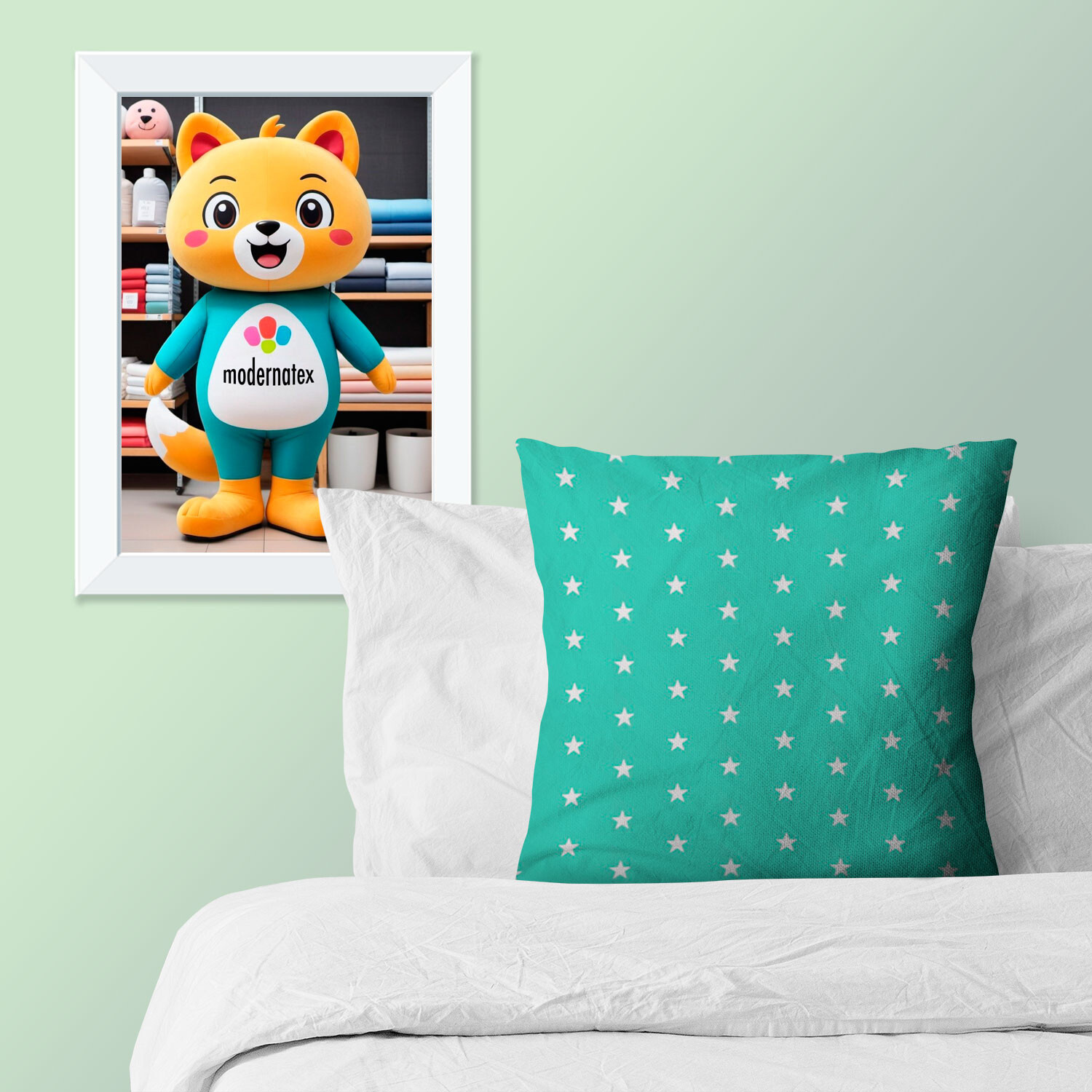 Popis Dětská bavlněná látka Hvězdy Bílé na Mentolovém