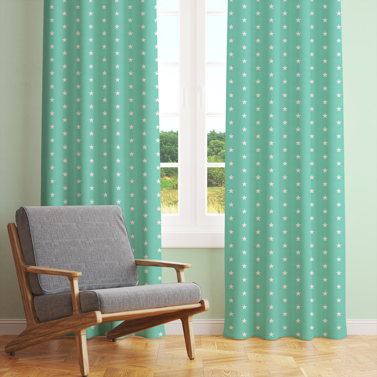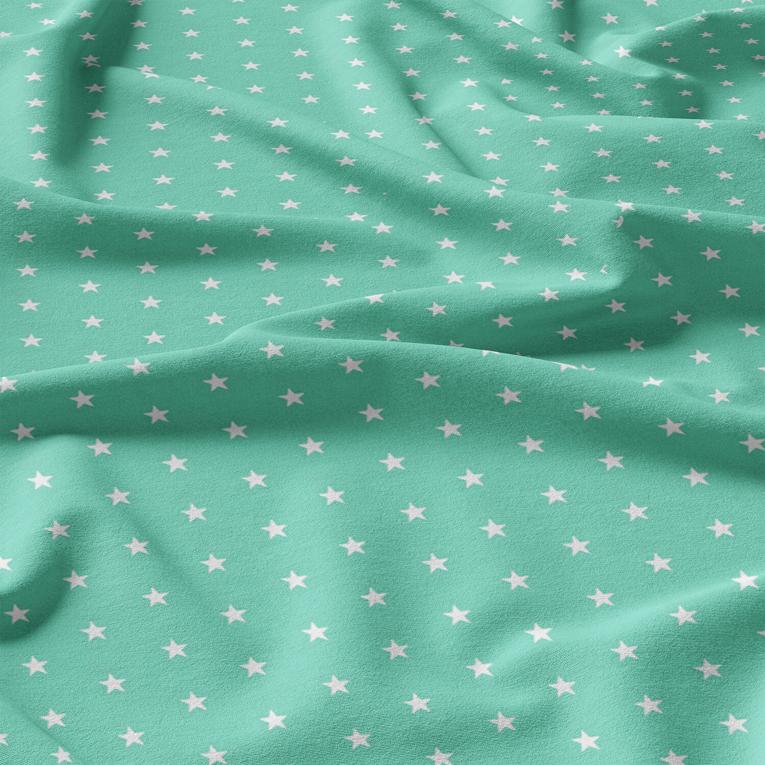 Dětská bavlněná látka Hvězdy Bílé na Mentolovém