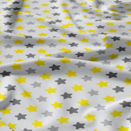 Dětská bavlněná látka Hvězdy Šedé a Žluté na Bílém