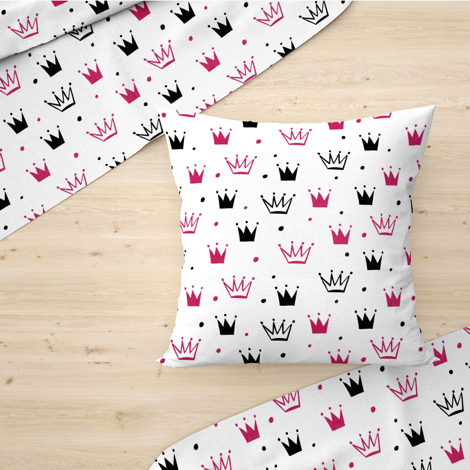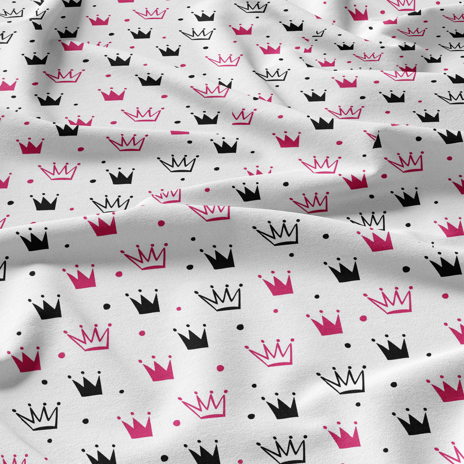 Popis Dětská bavlněná látka Korunky Amarantové na Bílém