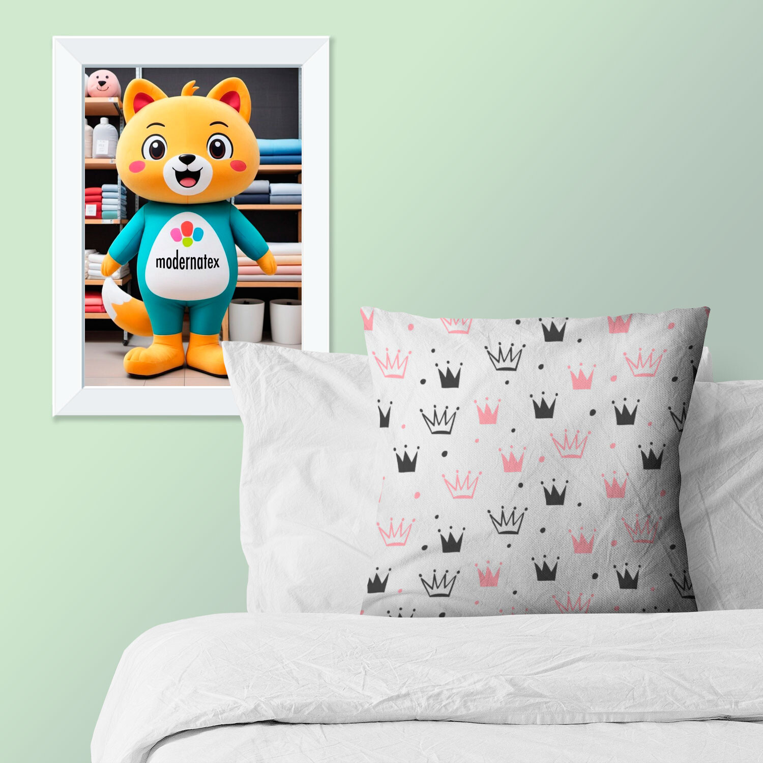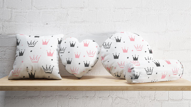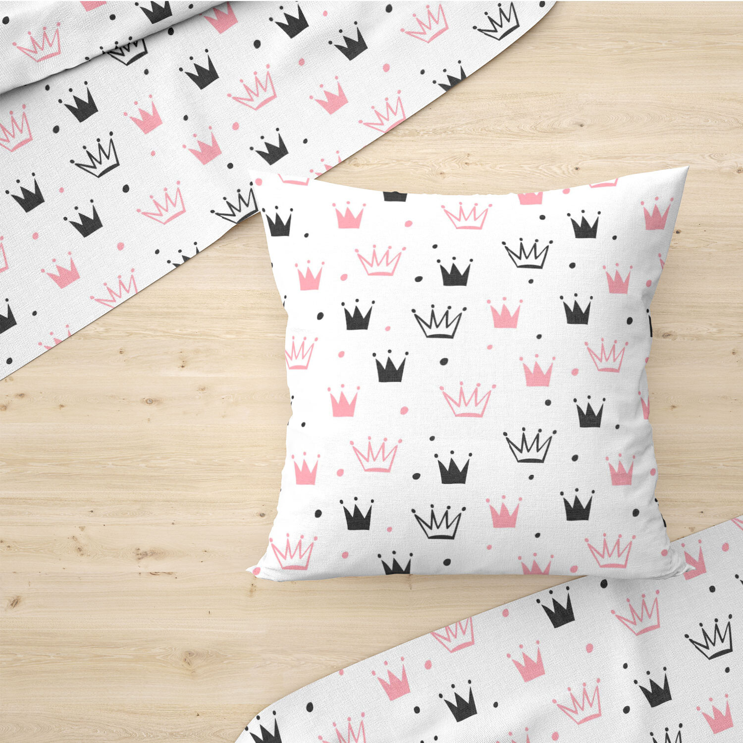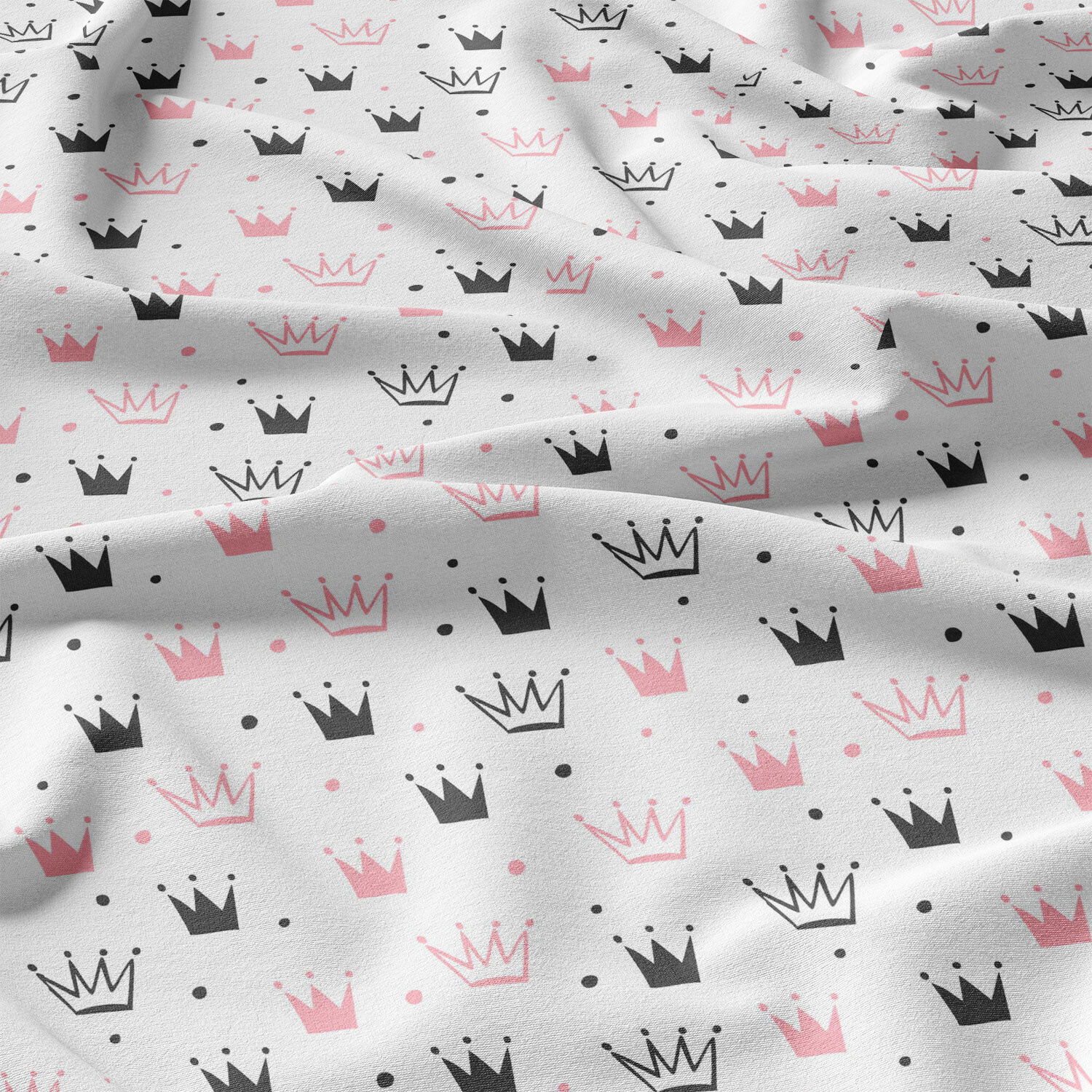 Popis Dětská bavlněná látka Korunky Růžové na Bílém