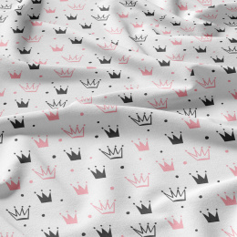Dětská bavlněná látka Korunky Růžové na Bílém