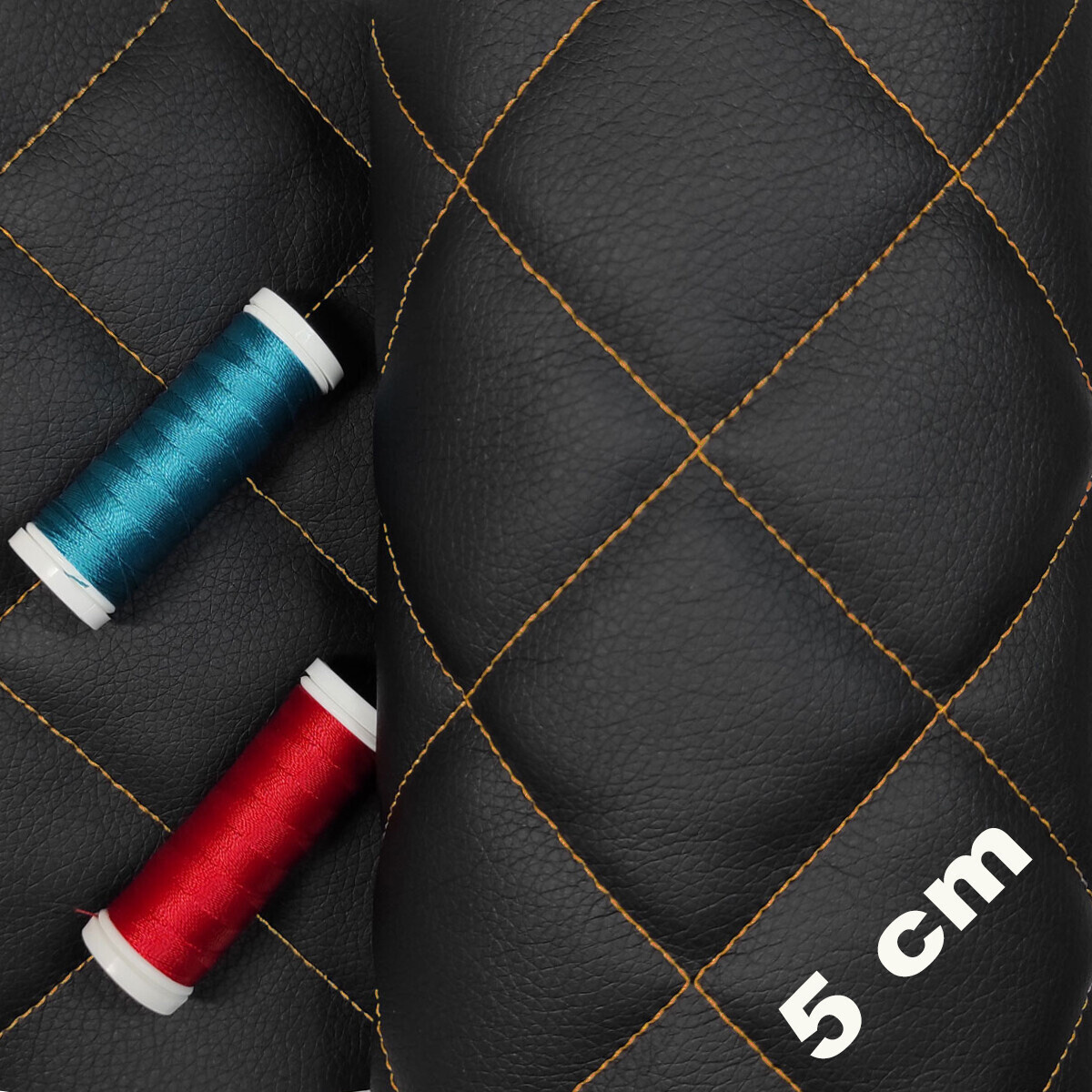 Ekokůže 5x5 barva Černá prošívaná Pomerančovými nitěmi 1,45 m x 0,7 m