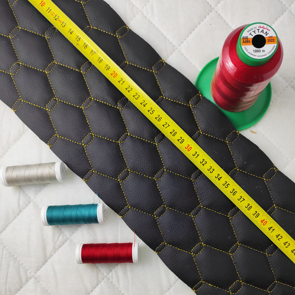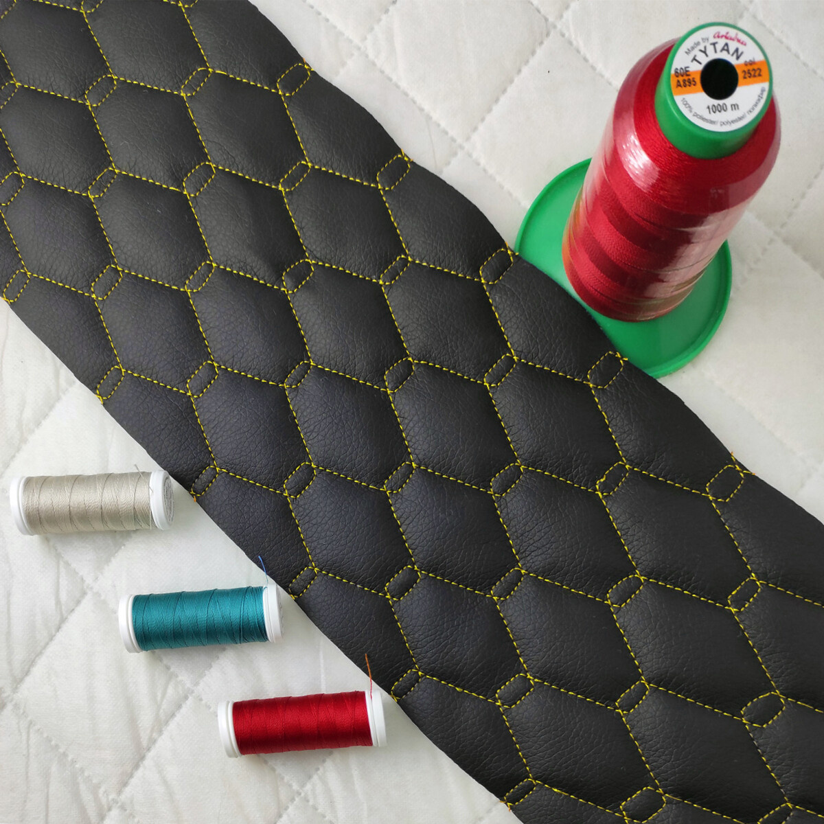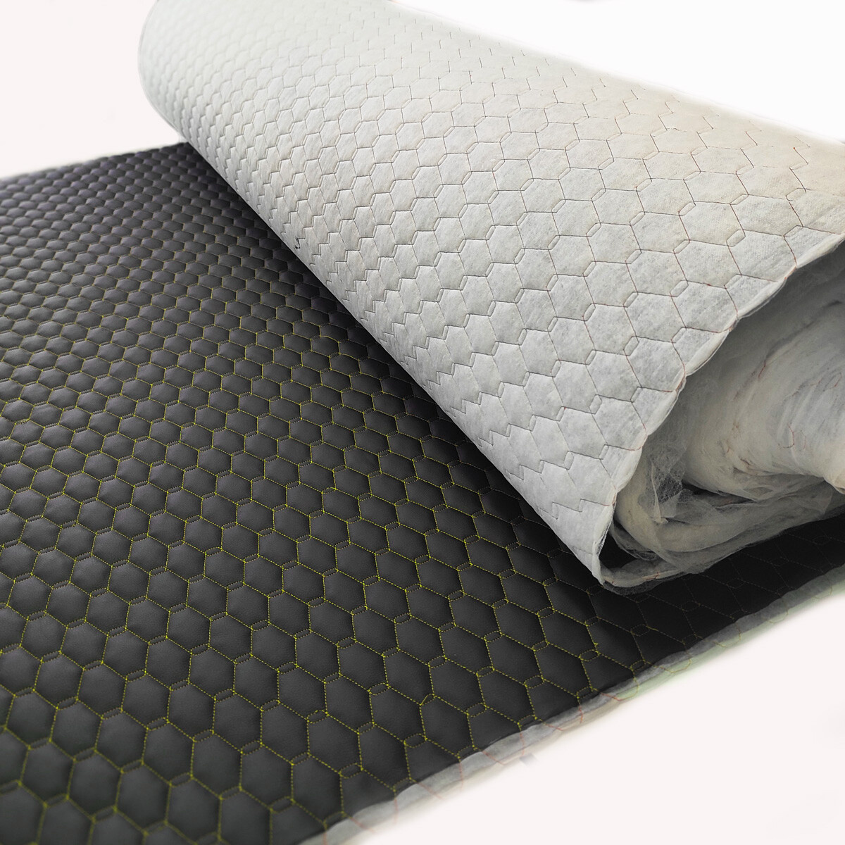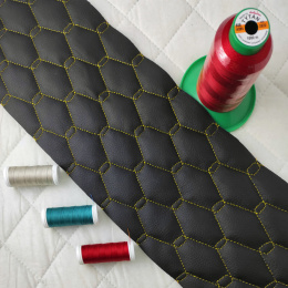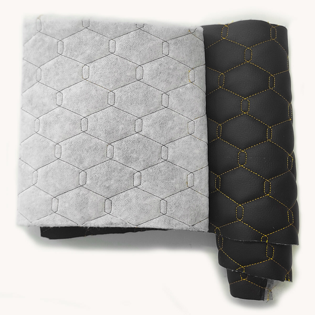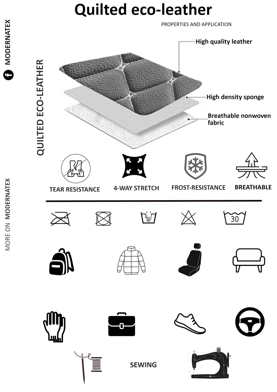 Popis materiálu. Prošívaná ekokůže GEO je moderní syntetický čalounický materiál, který kombinuje estetiku pravé kůže s vysokou odolností a snadnou údržbou. Vrchní vrstva z polyuretanu (PU) zajišťuje příjemný omak a odolnost proti vlhkosti, zatímco spodní strana z polyesterového úpletu poskytuje pružnost a stabilitu. Díky pravidelnému vzoru GEO cm vytvořenému technologií prošití je látka zároveň dekorativní i praktická.