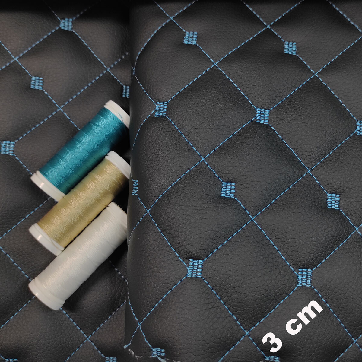 Popis Ekokůže MIX 3x3 cm barva Černá prošívaná Tyrkysovými nitěmi 1,45 m x 0,82 m