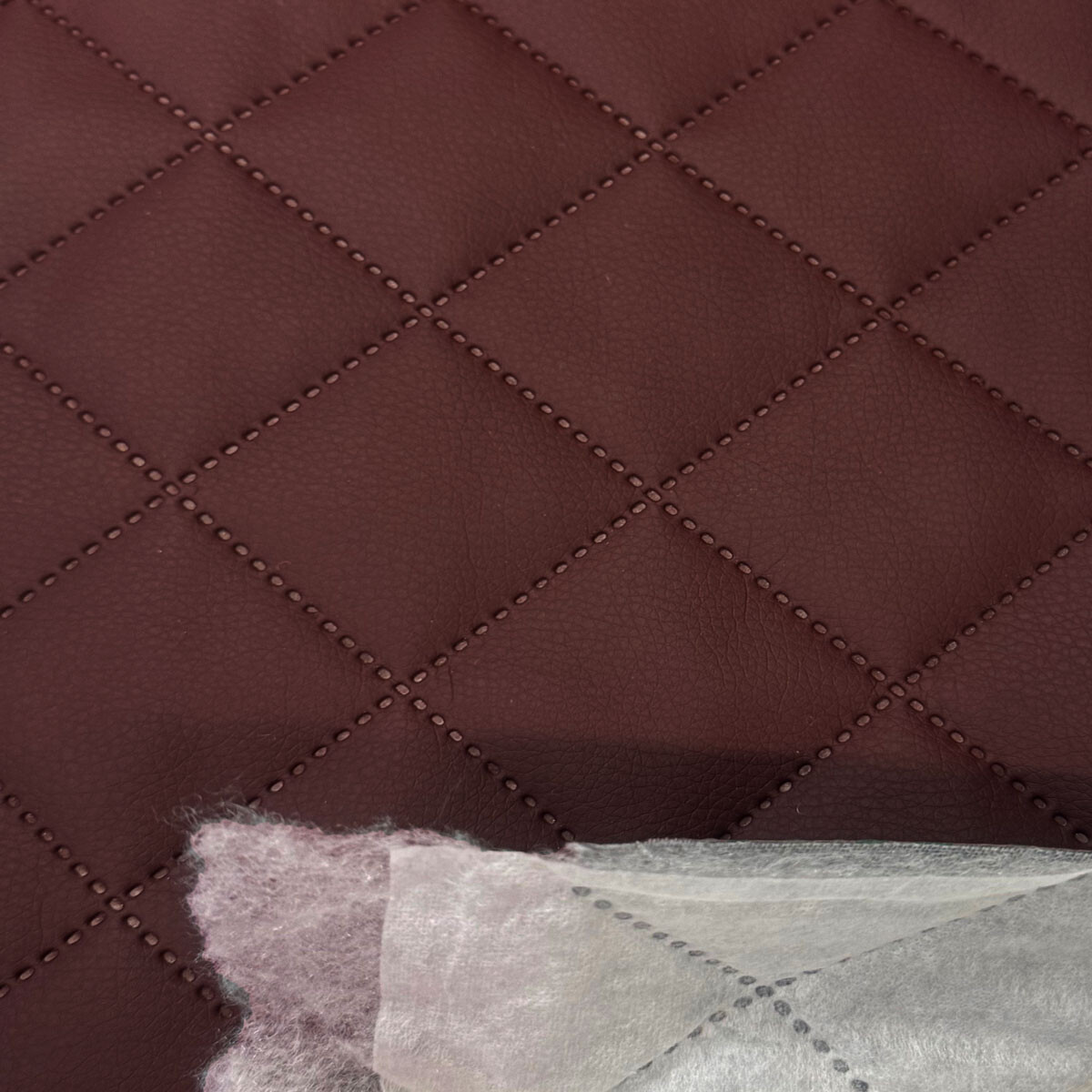 Popis Ekokůže prošívaná ultrazvukem, barva bordová, metráž