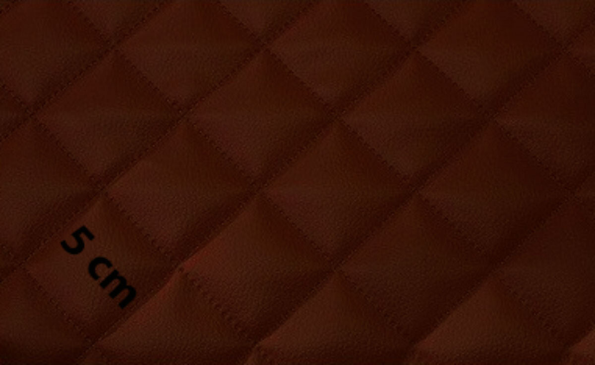 Popis materiálu. Prošívaná ekokůže 5x5 je moderní syntetický čalounický materiál, který kombinuje estetiku pravé kůže s vysokou odolností a snadnou údržbou. Vrchní vrstva z polyuretanu (PU) zajišťuje příjemný omak a odolnost proti vlhkosti, zatímco spodní strana z polyesterového úpletu poskytuje pružnost a stabilitu. Díky pravidelnému vzoru 5x5 cm vytvořenému technologií prošití je látka zároveň dekorativní i praktická.