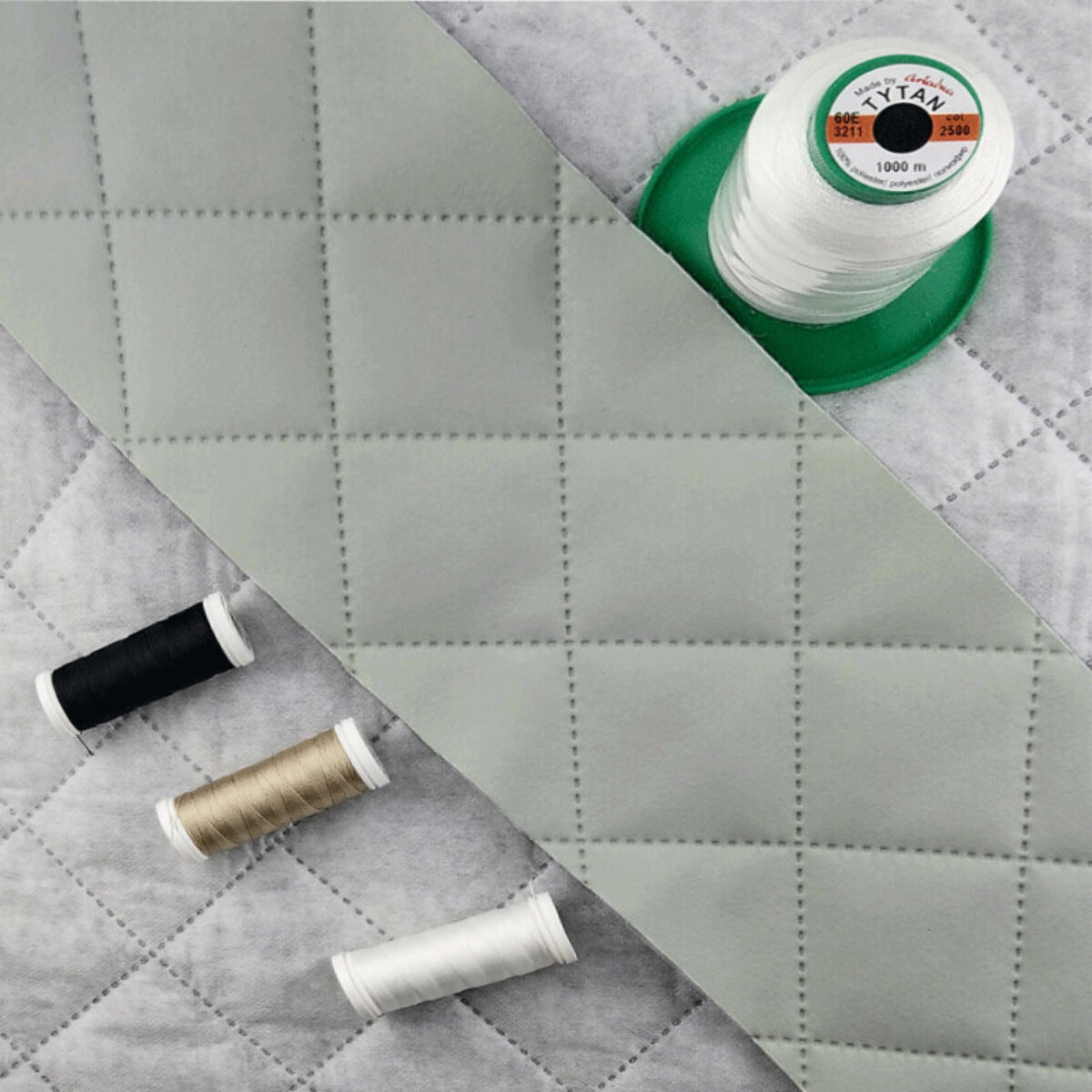 Popis Ekokůže prošívaná ultrazvukem, barva světle šedá, metráž