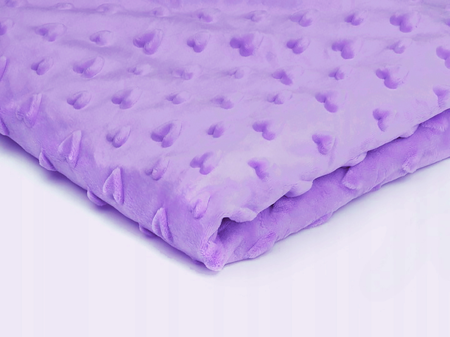 Popis Látka minky srdička, 320 g/m², šíře 160 cm, metráž, levandule