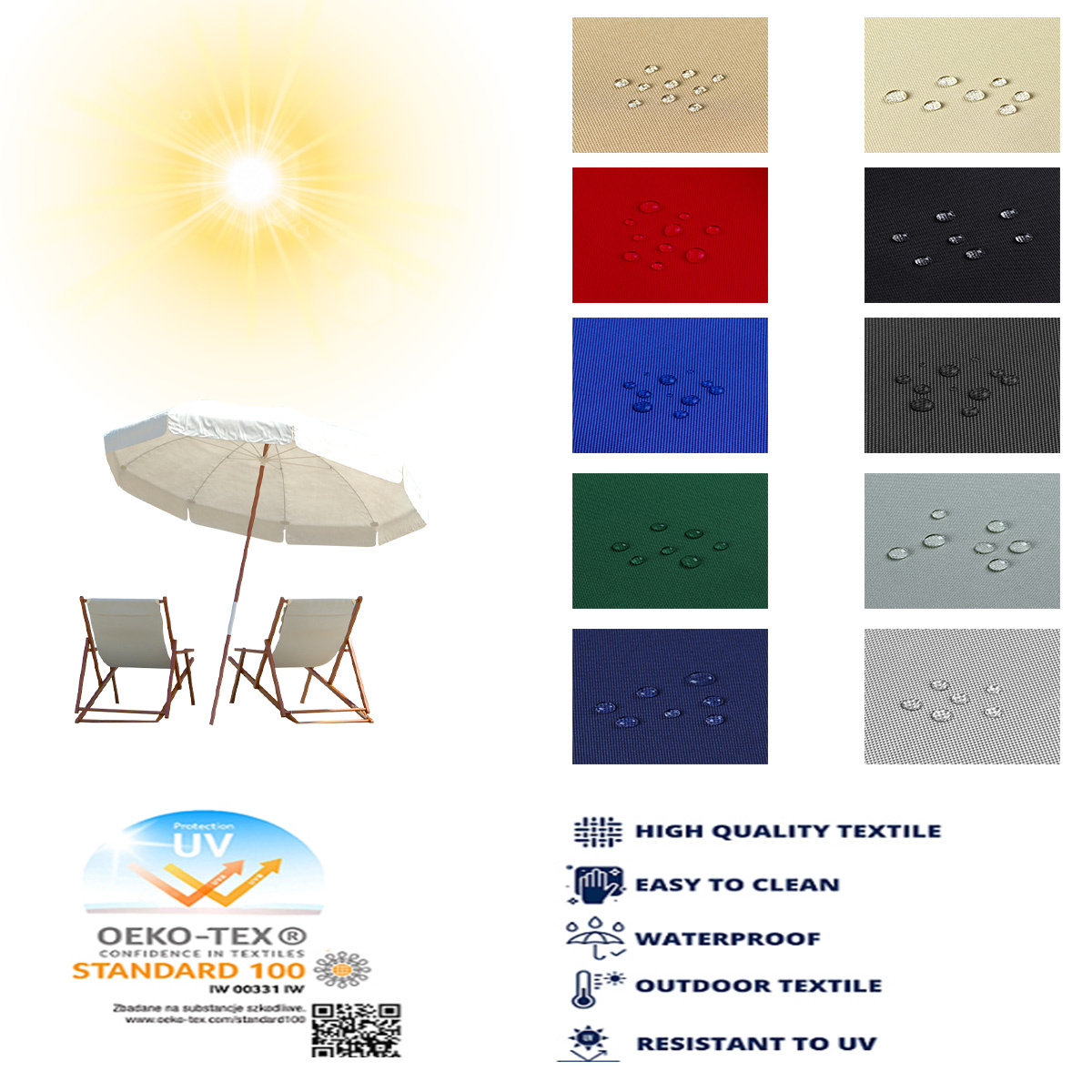 Látky na slunečníků, markýzy. Látky s vysokou odolností proti slunečnímu záření lze použít k výrobě deštníků, krytů, houpaček a samozřejmě zahradního nábytkuVíce