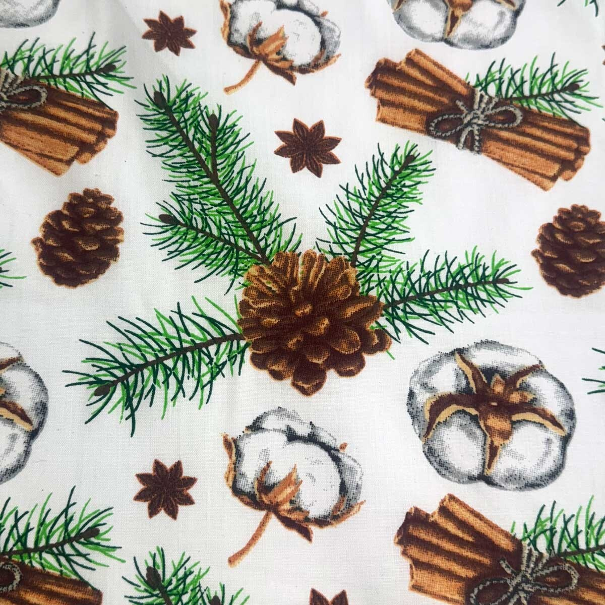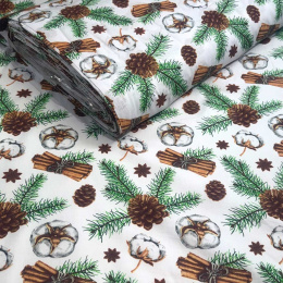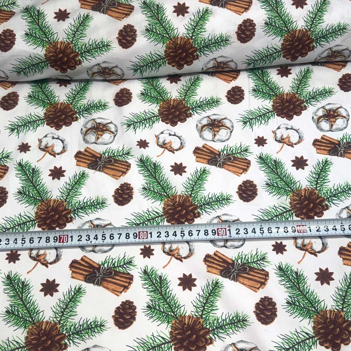 Recenze Vánoční bavlněná látka, metráž, šíře 160 cm, Jedlové Šišky na Bílém
