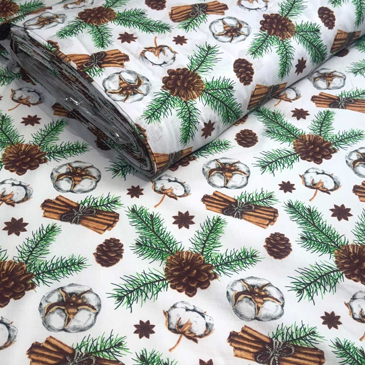 Tato látka je osvěžena krásným vánočním vzorem, který přidá kouzlo svátků k jakémukoli projektu. Je to skvělá volba pro výrobu povlečení, prostěradel, závěsů, ubrusů, domácích dekorací a dalších ručně vyráběných výrobků.