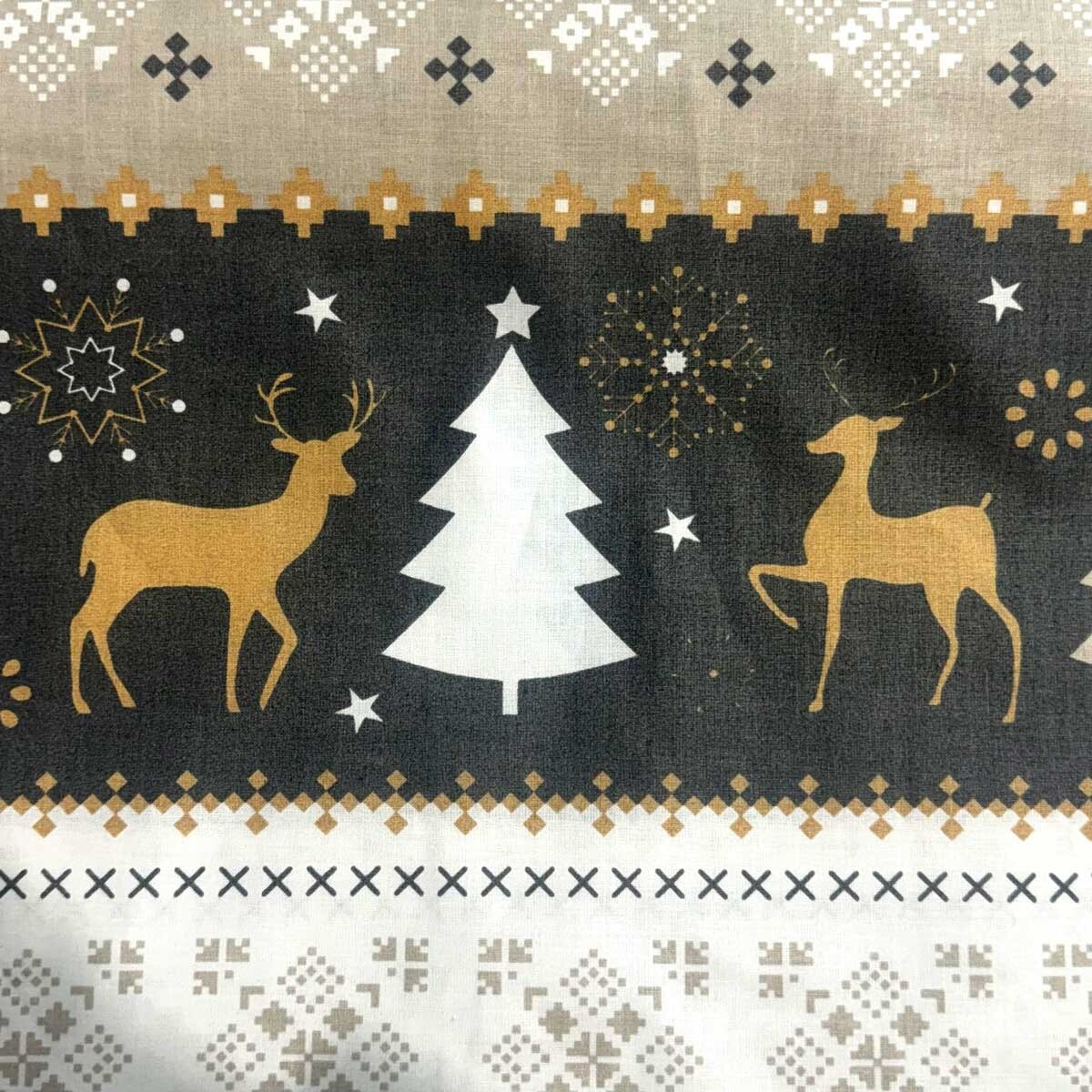 Tato látka je ideální pro ty, kteří chtějí přinést trochu vánočního kouzla do svého domova nebo do svých ručně vyráběných projektů. Přineste radost svátků do svého domova s touto nádhernou vánoční bavlněnou látkou.