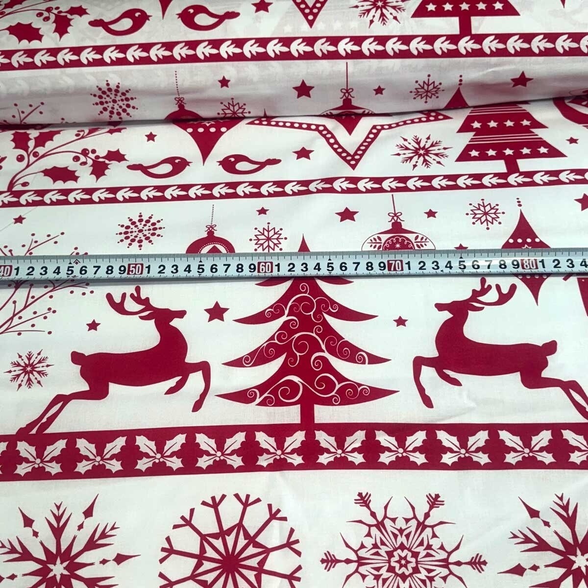 Popis Vánoční bavlněná látka, metráž, šíře 160 cm, Skandinávský motiv Červený na Bílem