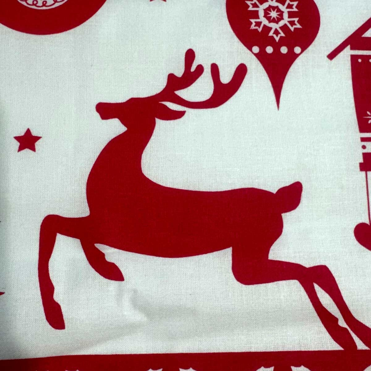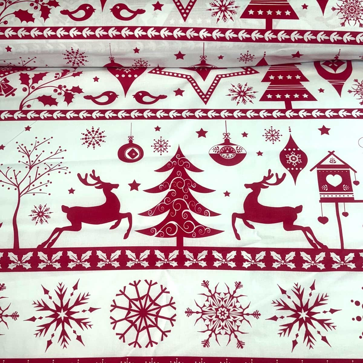 Vánoční bavlněná látka, metráž, šíře 160 cm, Skandinávský motiv Červený na Bílem