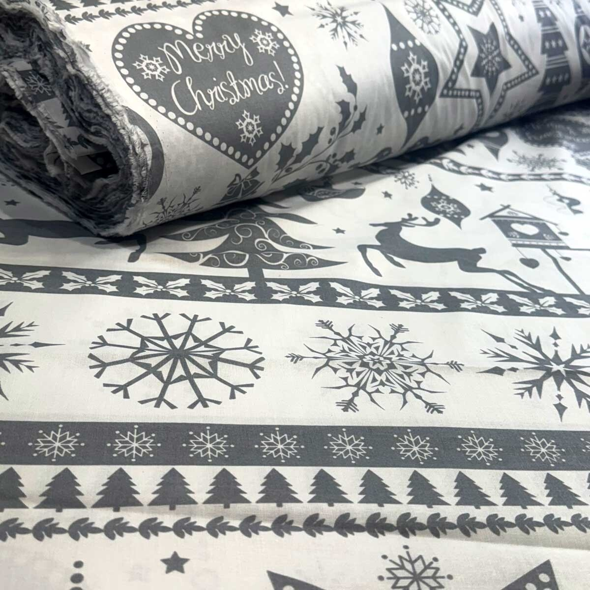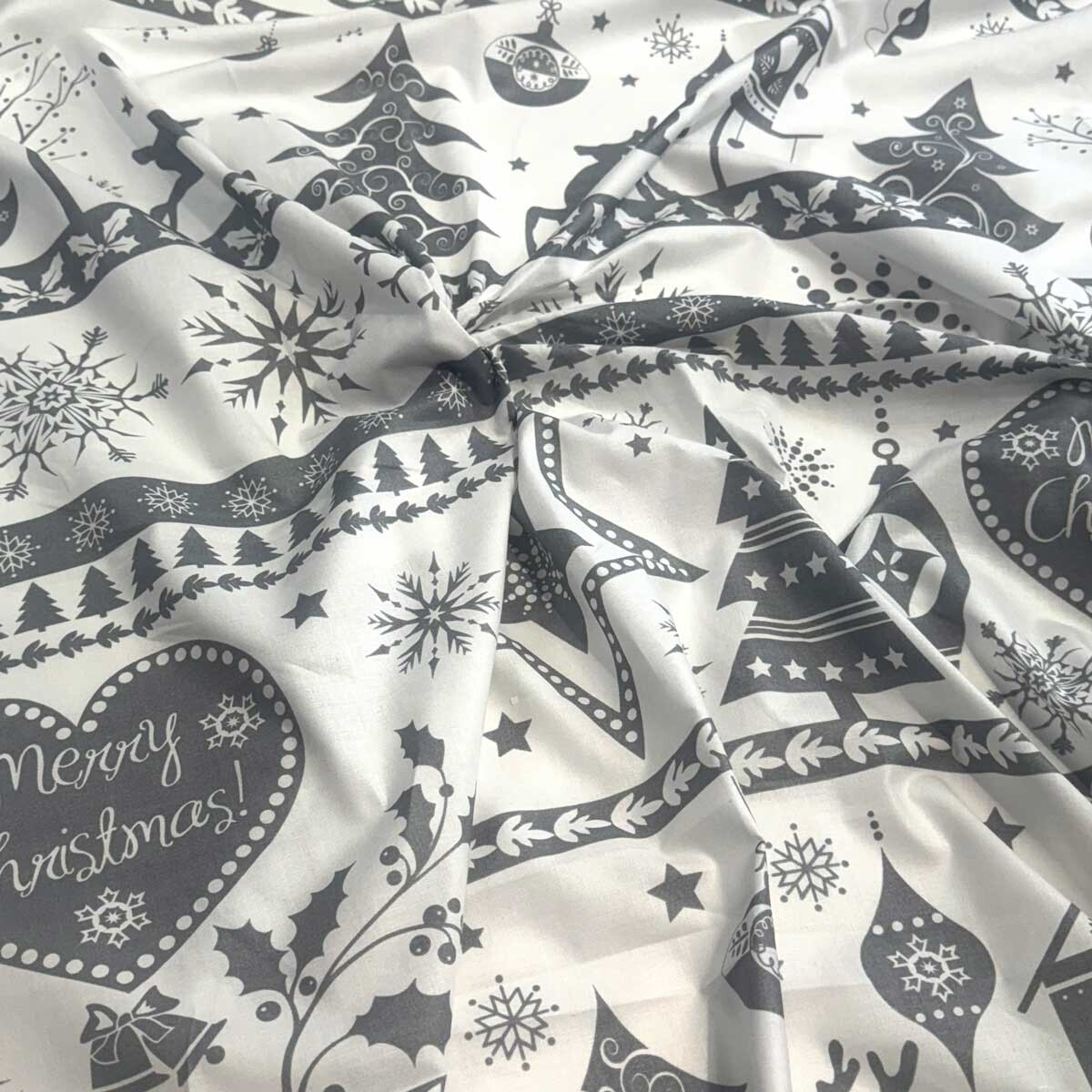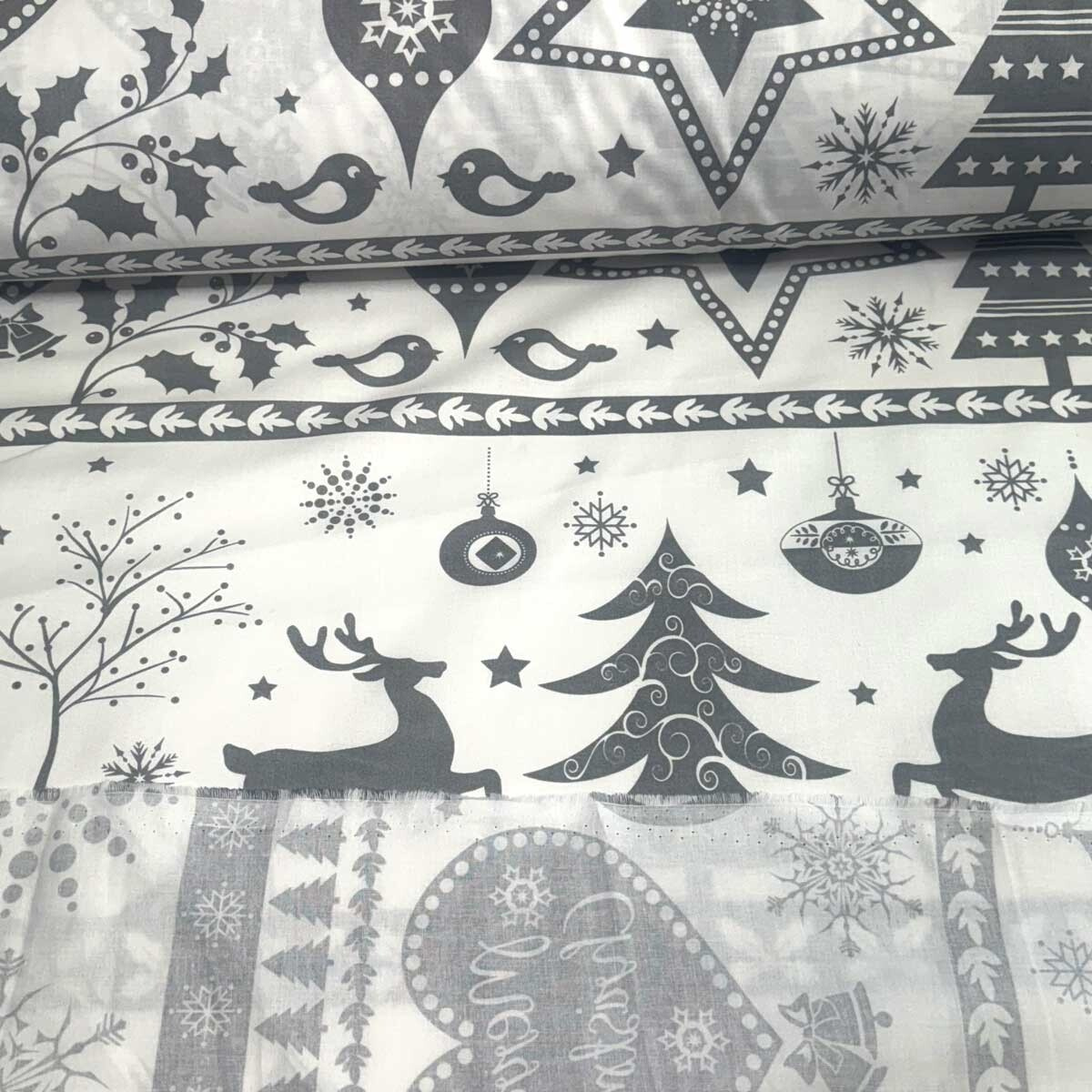Vánoční bavlněná látka, metráž, šíře 160 cm, Skandinávský motiv Šedý na Bílém
