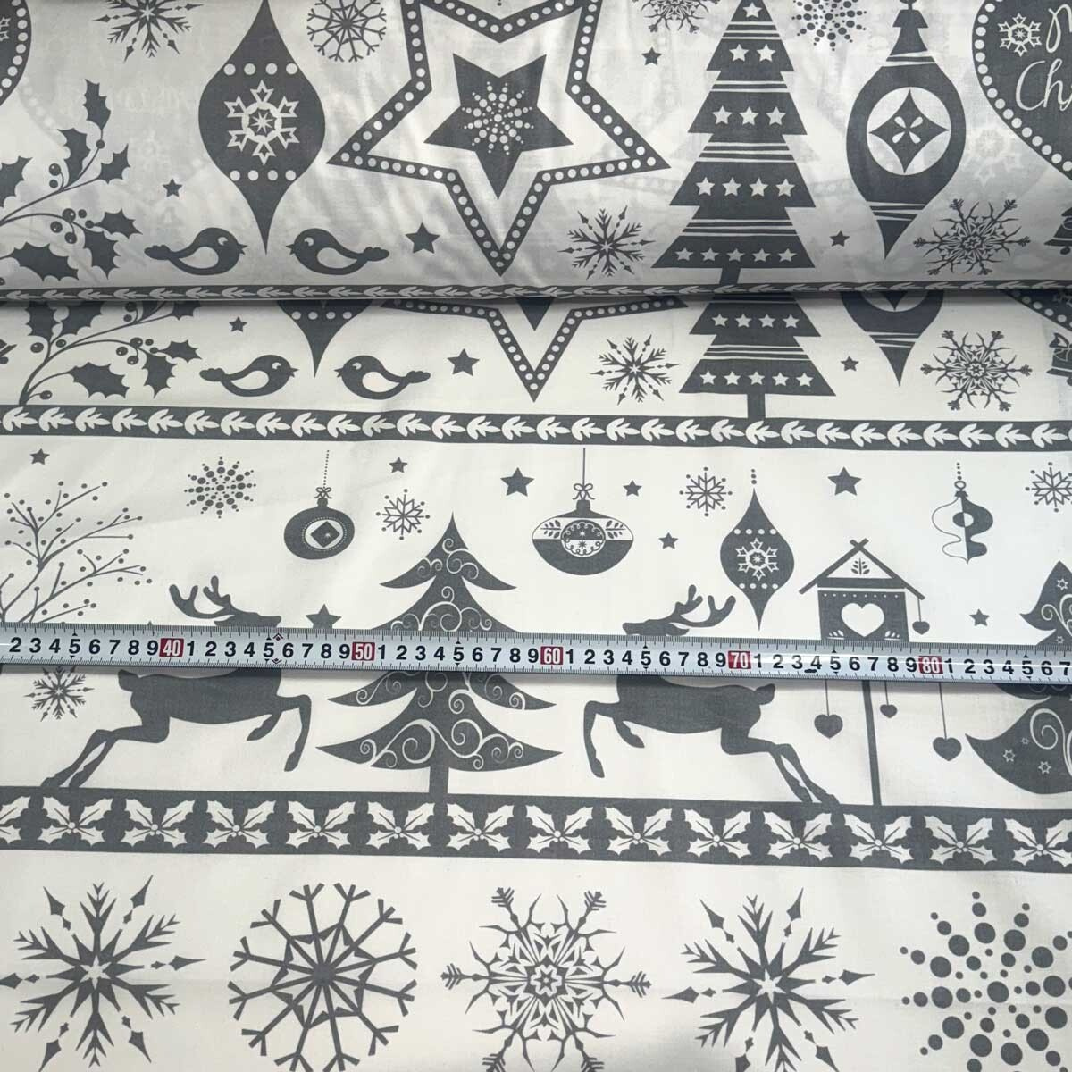 Popis Vánoční bavlněná látka, metráž, šíře 160 cm, Skandinávský motiv Šedý na Bílém
