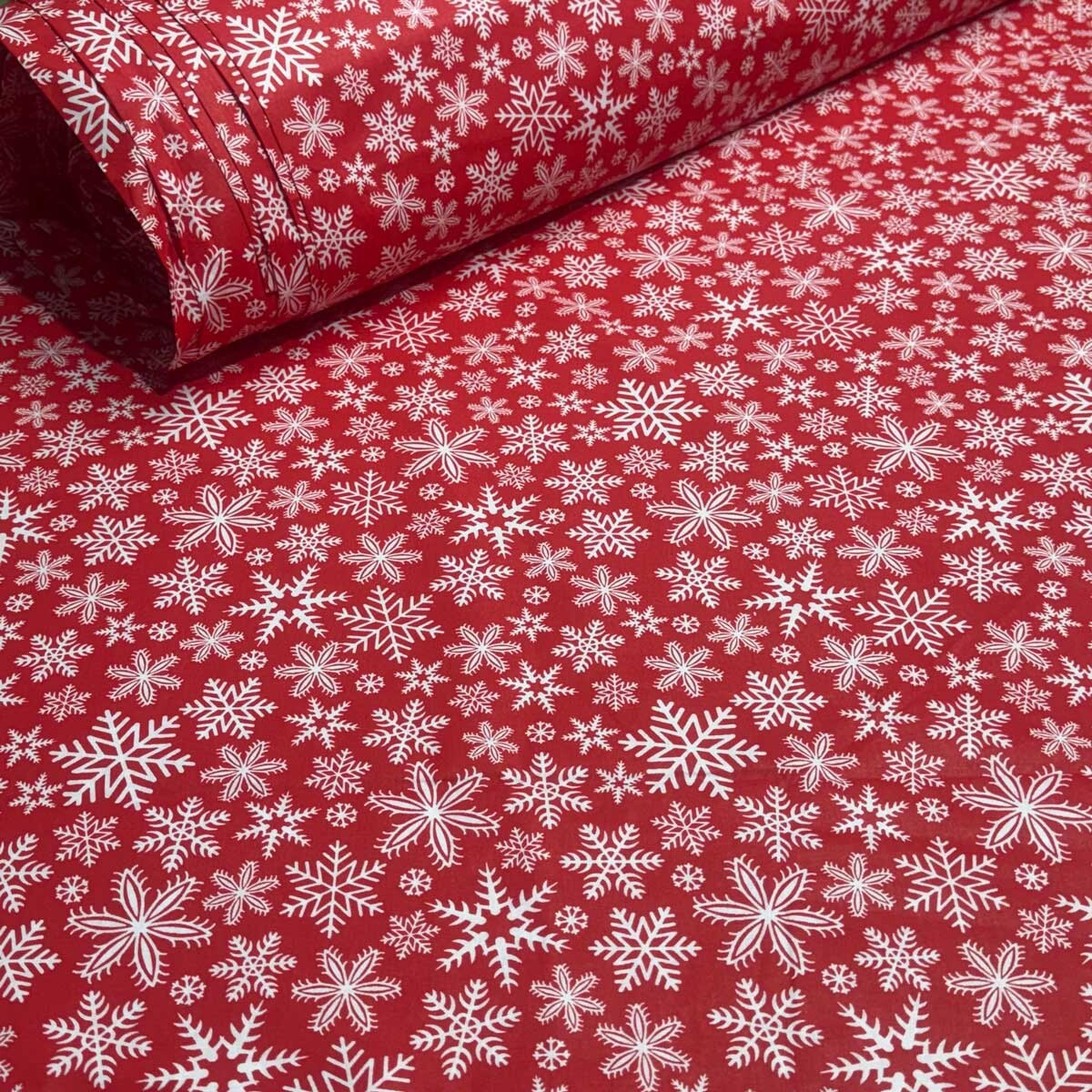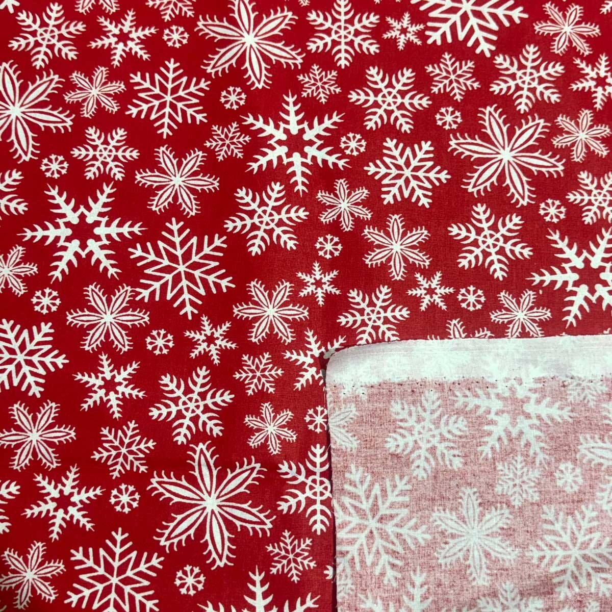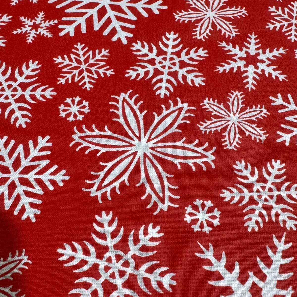 Recenze Vánoční bavlněná látka, metráž, šíře 160 cm, Sněhové vločky Bílé na Červeném
