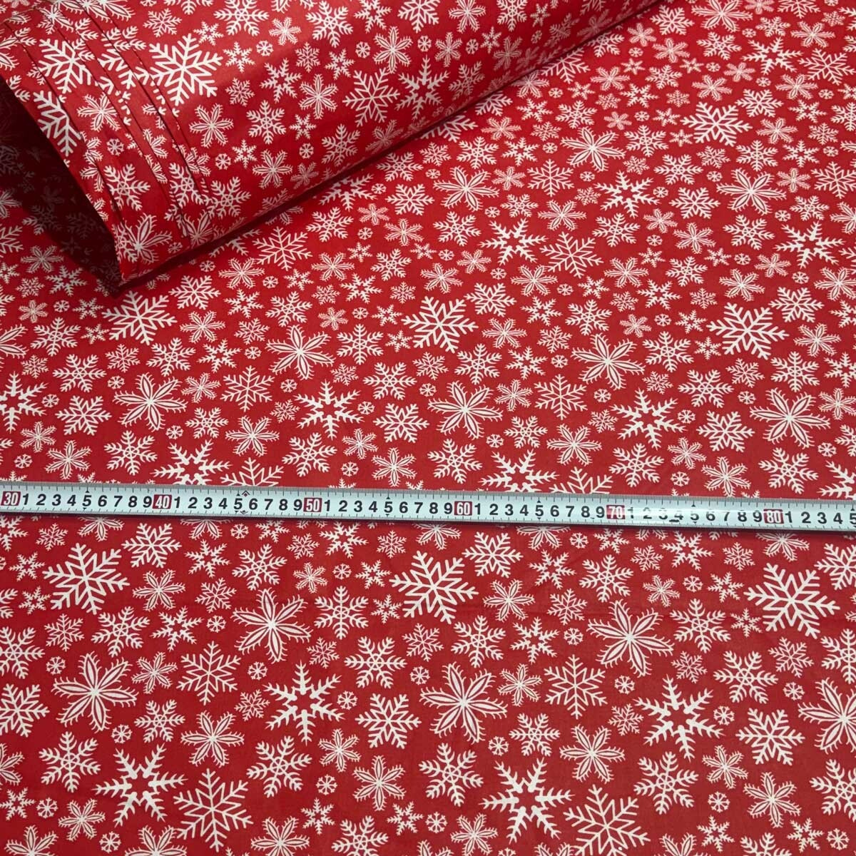 Popis Vánoční bavlněná látka, metráž, šíře 160 cm, Sněhové vločky Bílé na Červeném