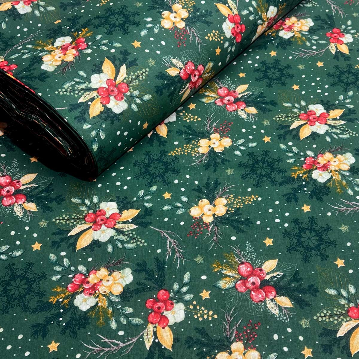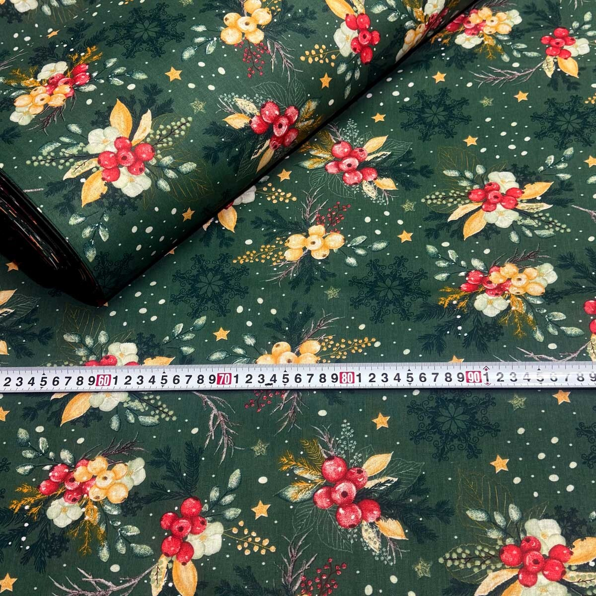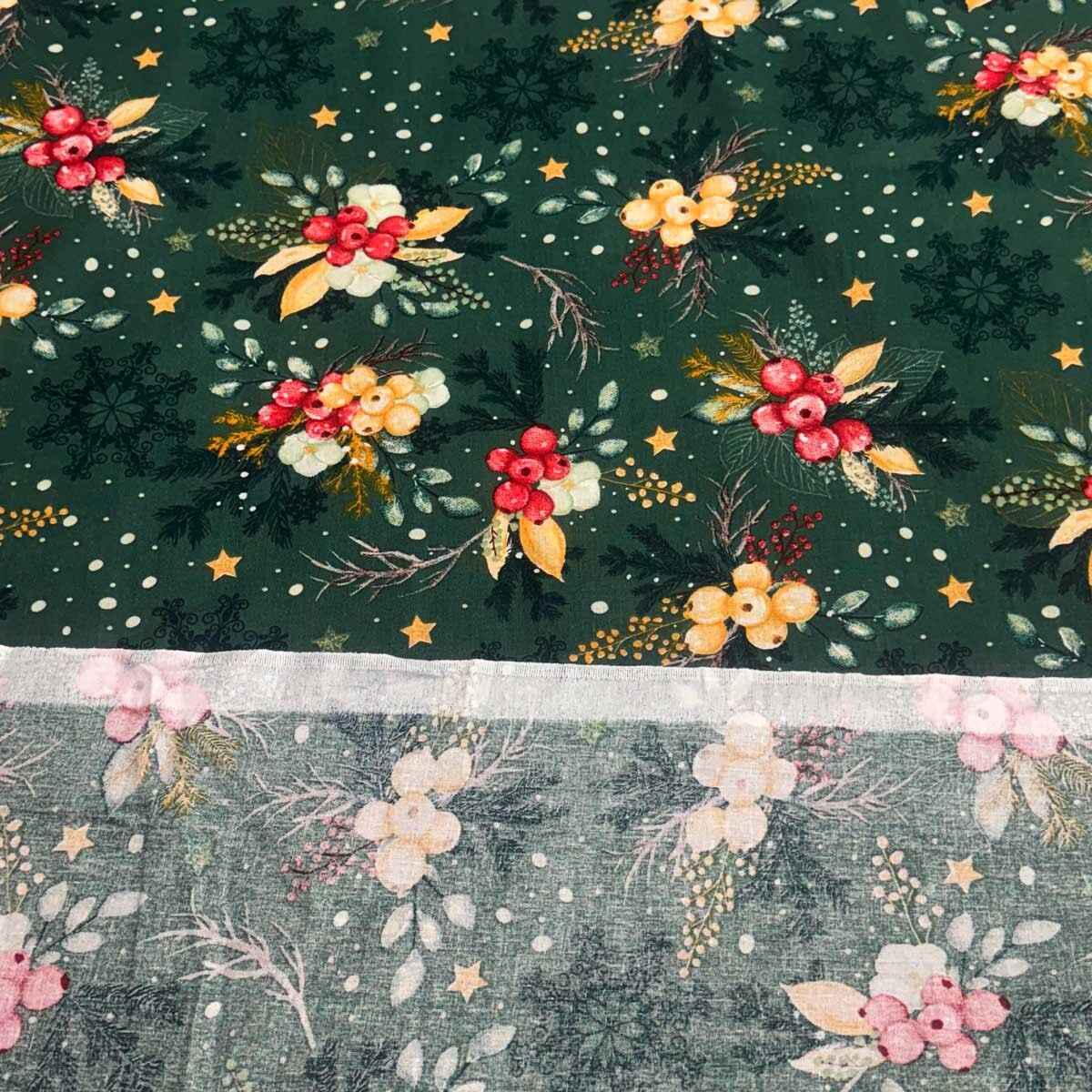Tato látka je osvěžena krásným vánočním vzorem, který přidá kouzlo svátků k jakémukoli projektu. Je to skvělá volba pro výrobu povlečení, prostěradel, závěsů, ubrusů, domácích dekorací a dalších ručně vyráběných výrobků.