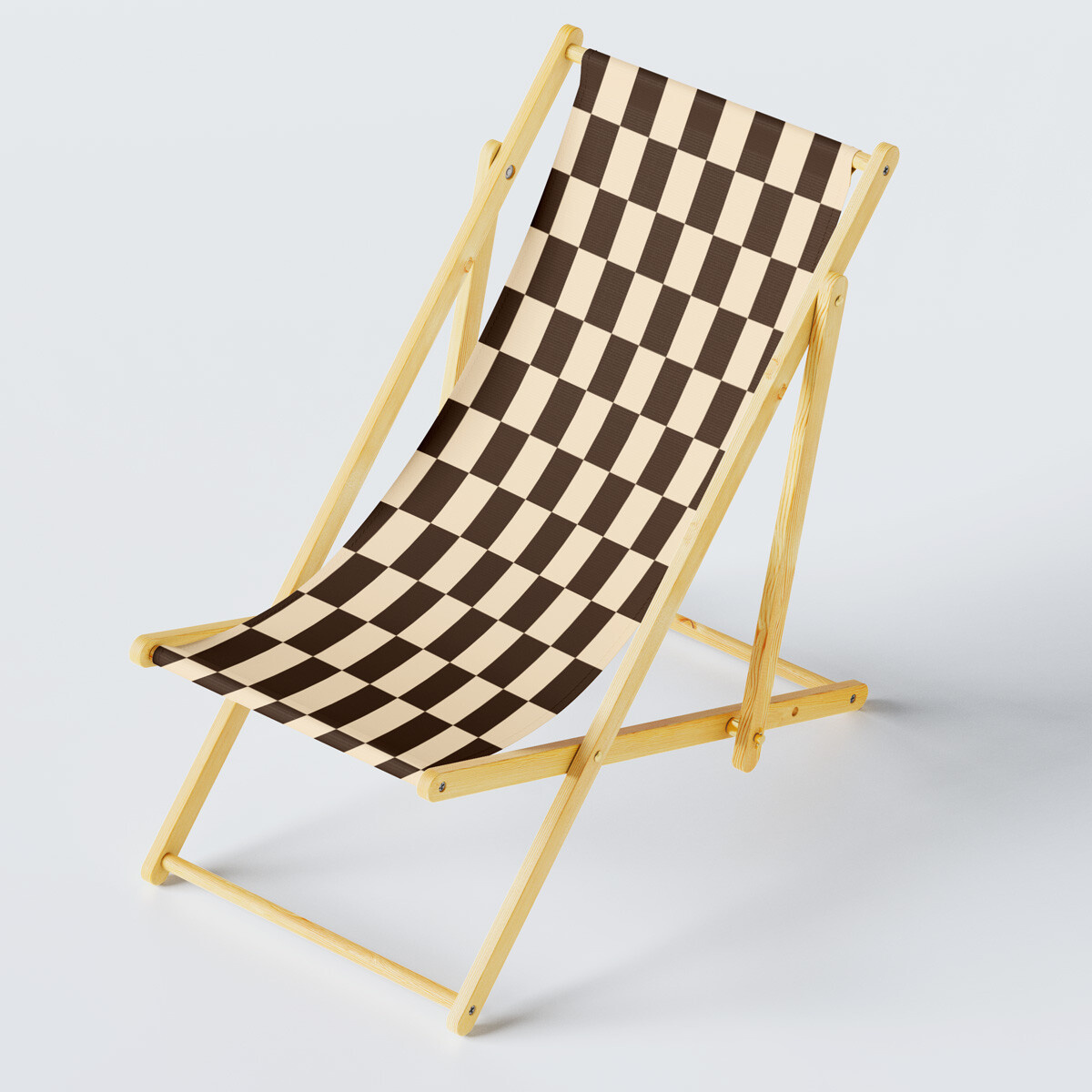 Venkovní látka na zahradní lehátka a houpací sítě, Béžovo-Hnědá Šachovnice, 5x10 cm