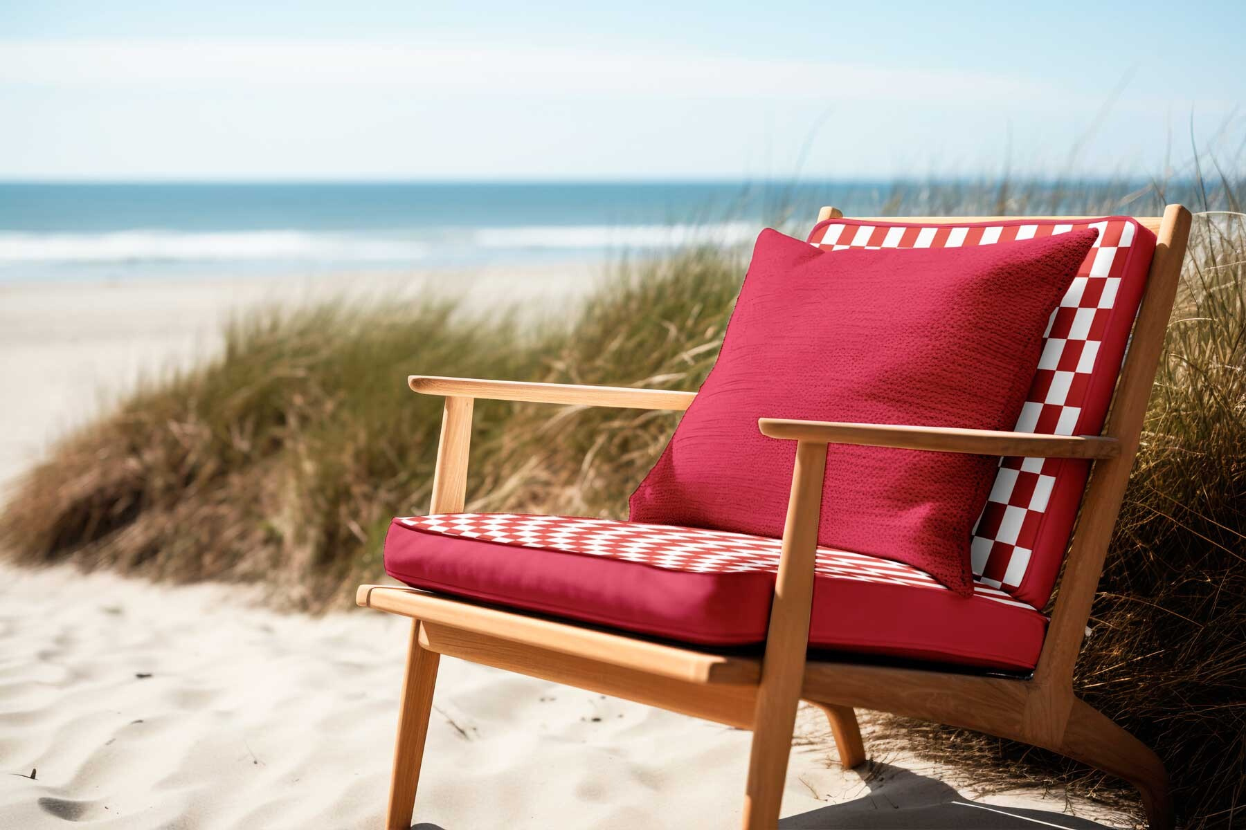 Popis Venkovní látka na zahradní lehátka a houpací sítě, Bílo-Červená Šachovnice, 5x10 cm