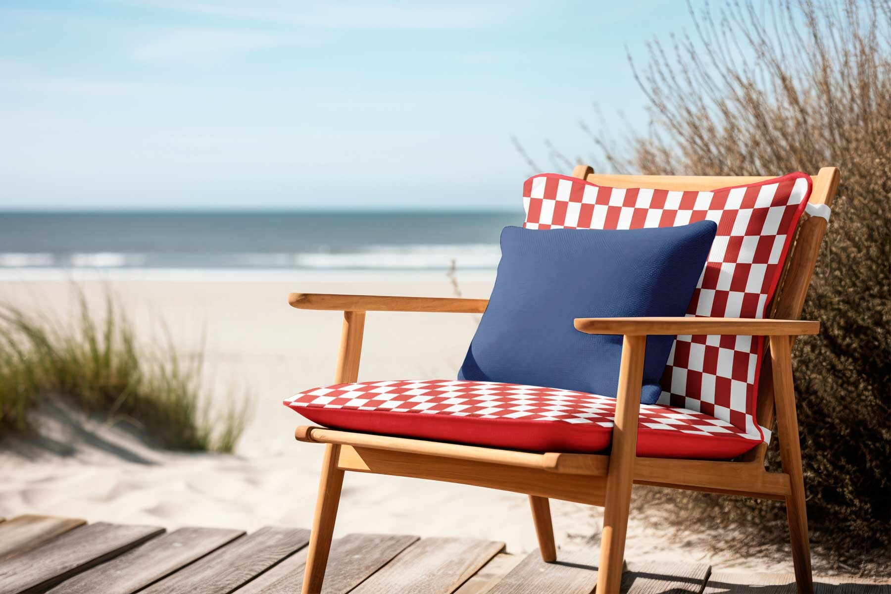 Venkovní látka na zahradní lehátka a houpací sítě, Bílo-Červená Šachovnice, 5x10 cm