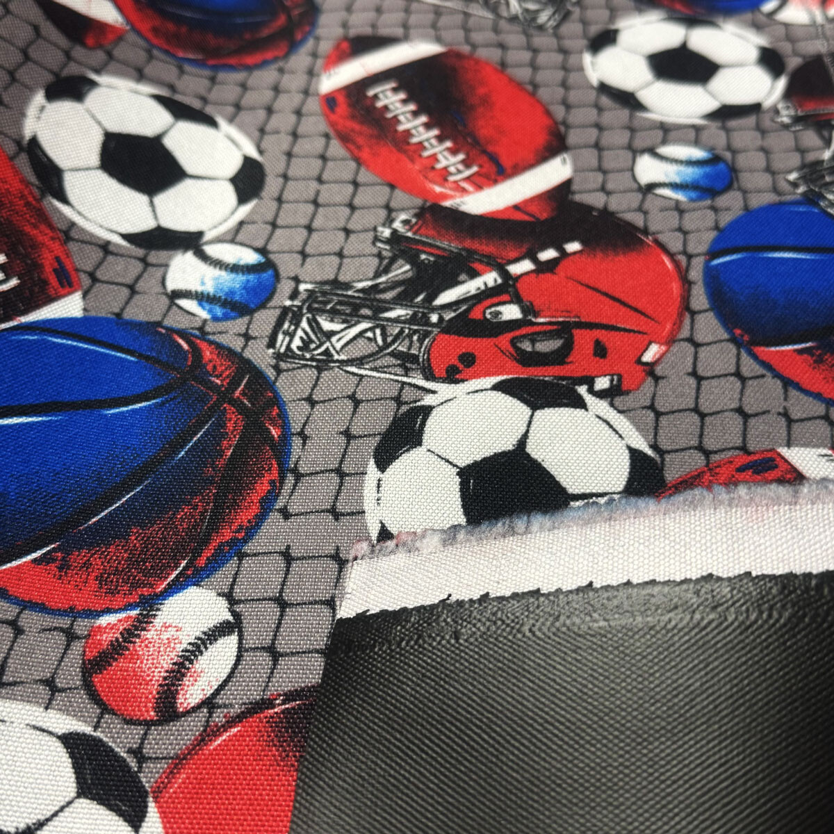 Popis Nepromokavá látka Kodura PVC zátěr 600D, 360 g/m², šíře 150 cm, míče na šedém