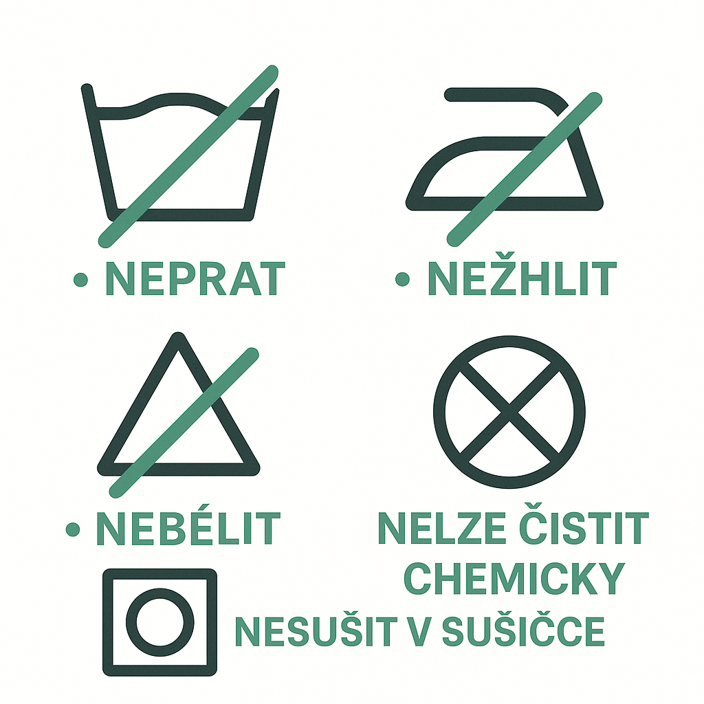 🔹 Používejte doporučené prací prostředky a perte při nízké teplotě.