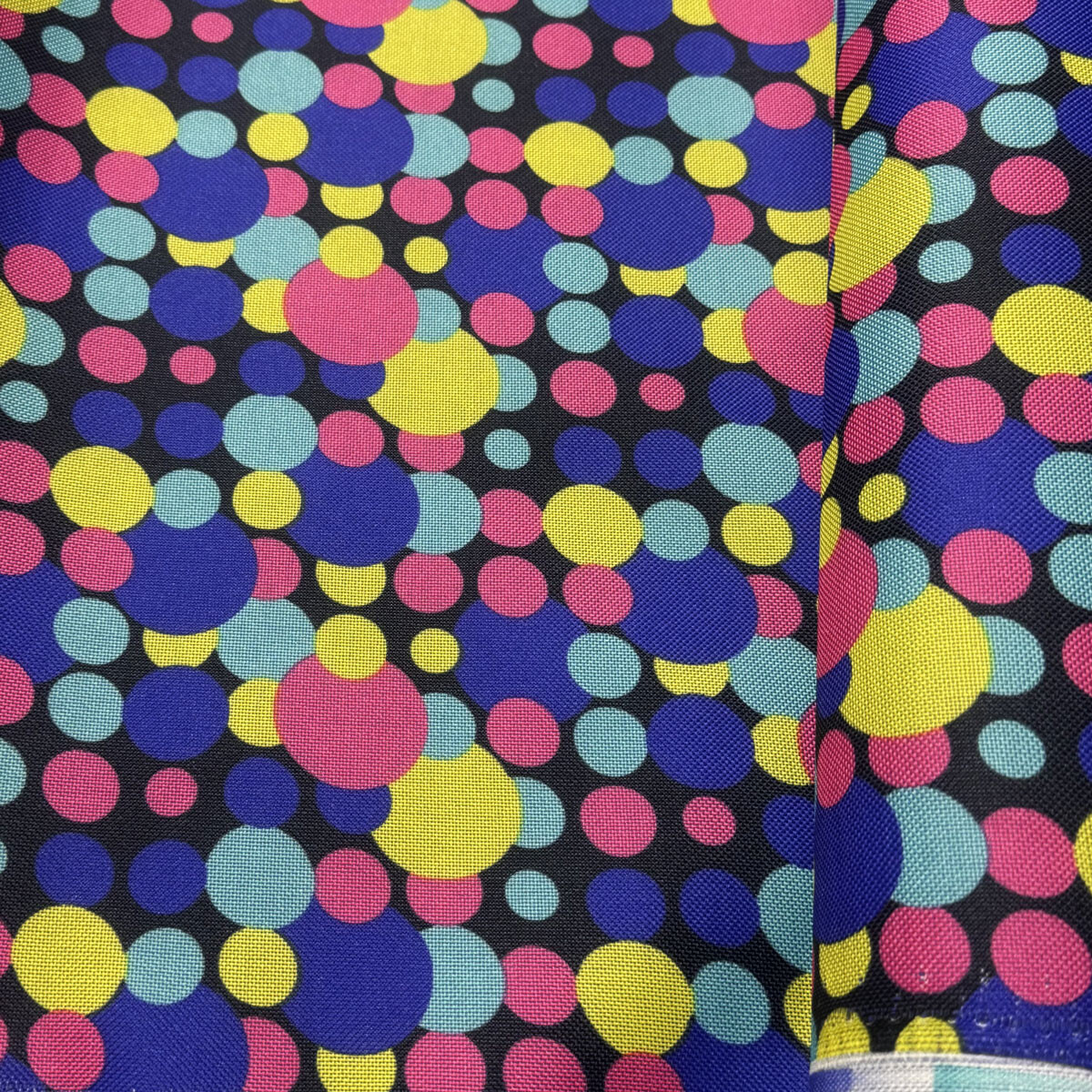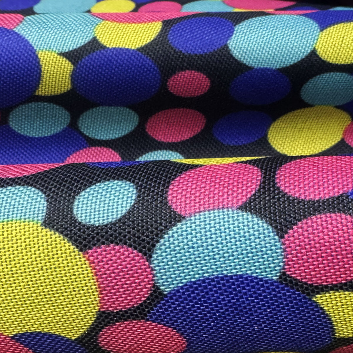 Popis Nepromokavá látka Kodura PVC zátěr 600D, 360 g/m², šíře 150 cm, puntík multi