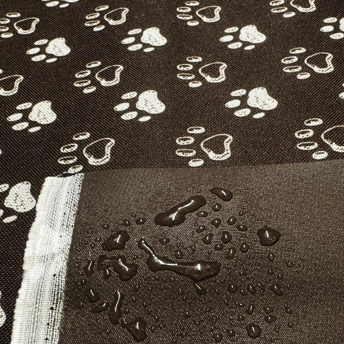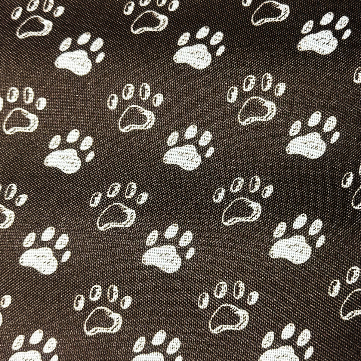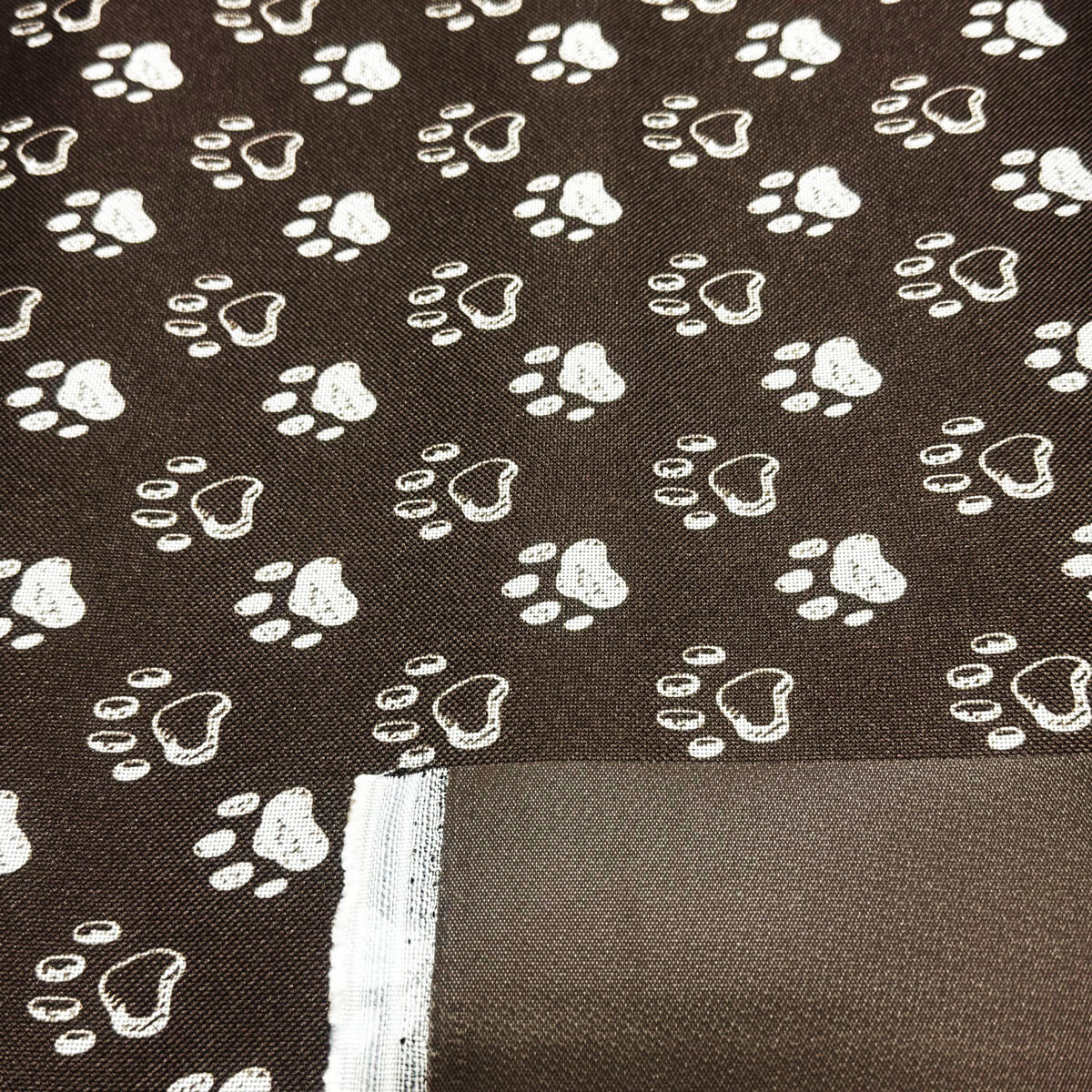 Popis Nepromokavá látka Kodura PVC zátěr 600D, 360 g/m², šíře 150 cm, tlapky na hnědém
